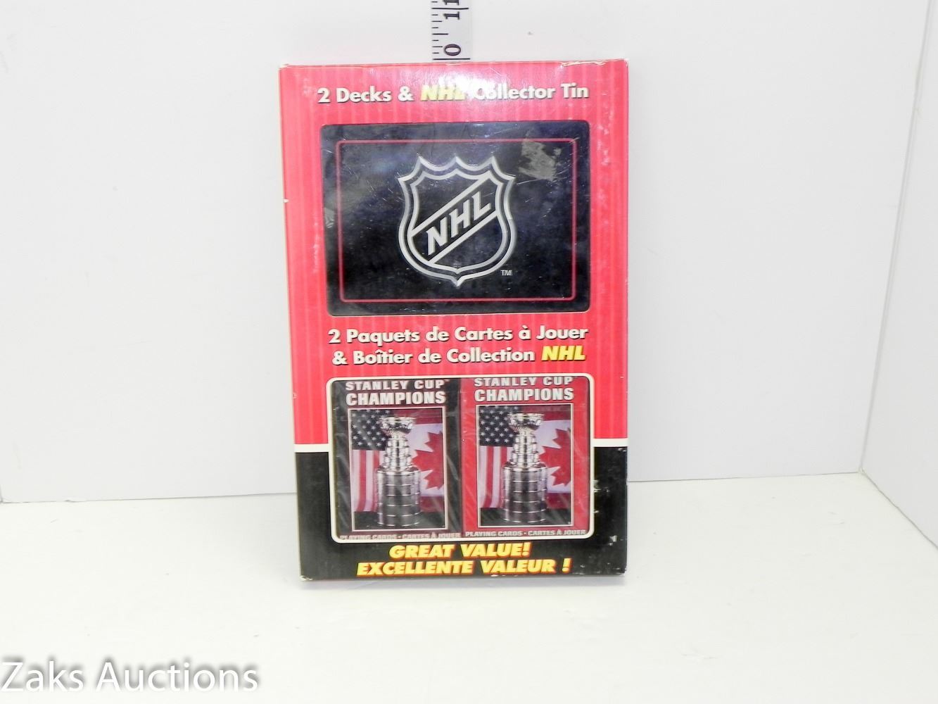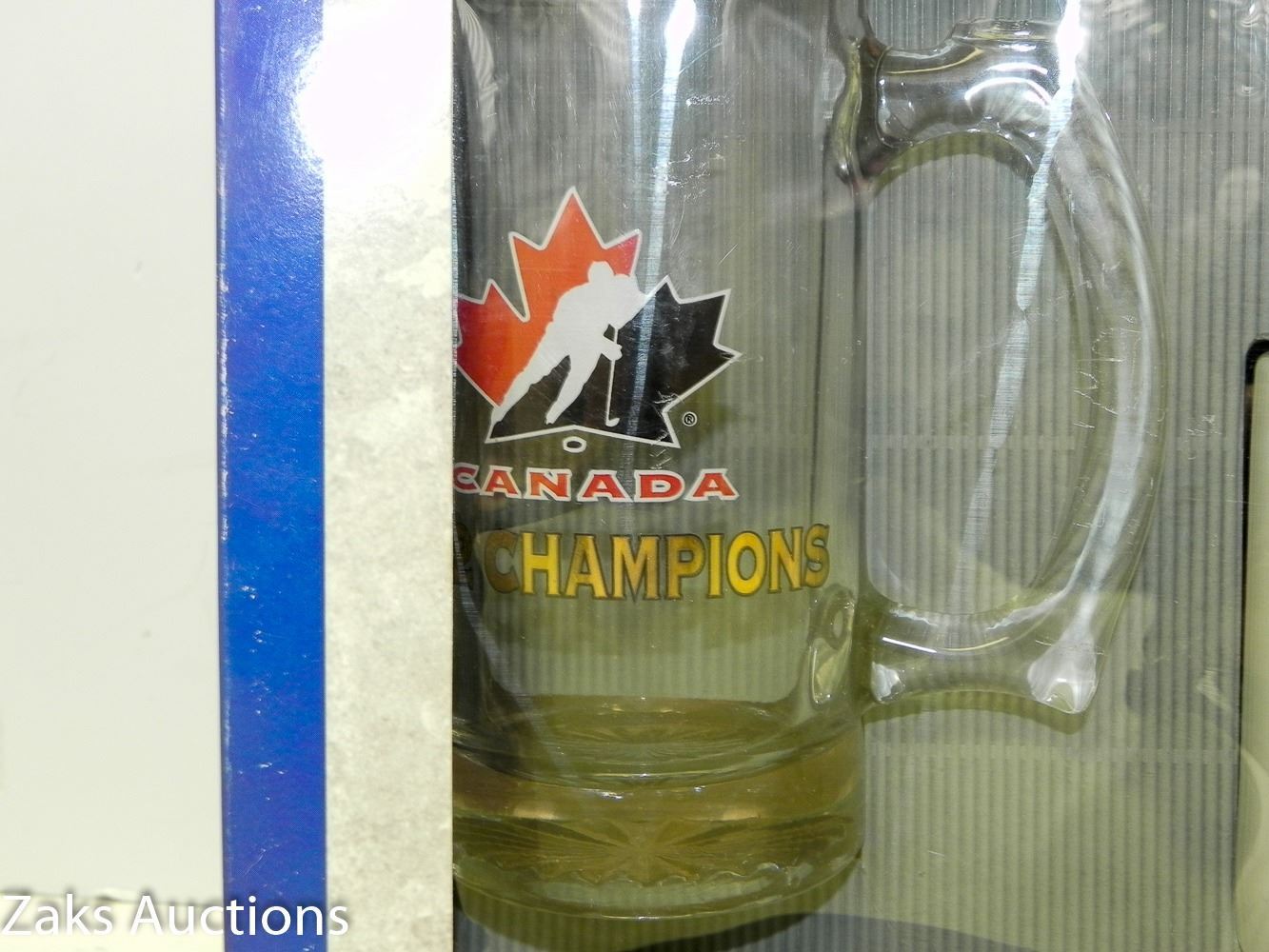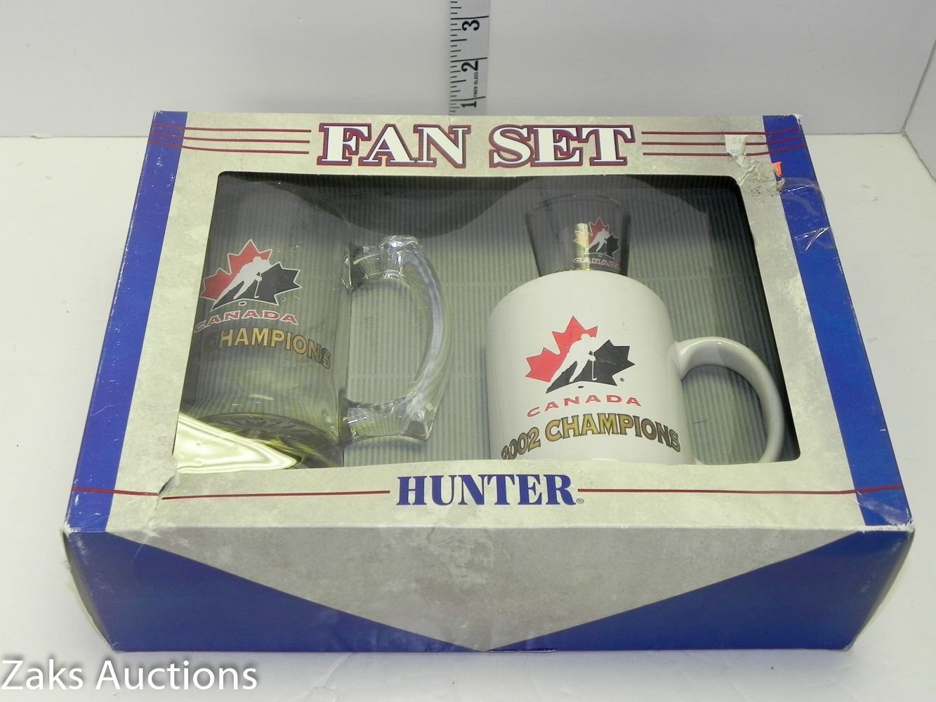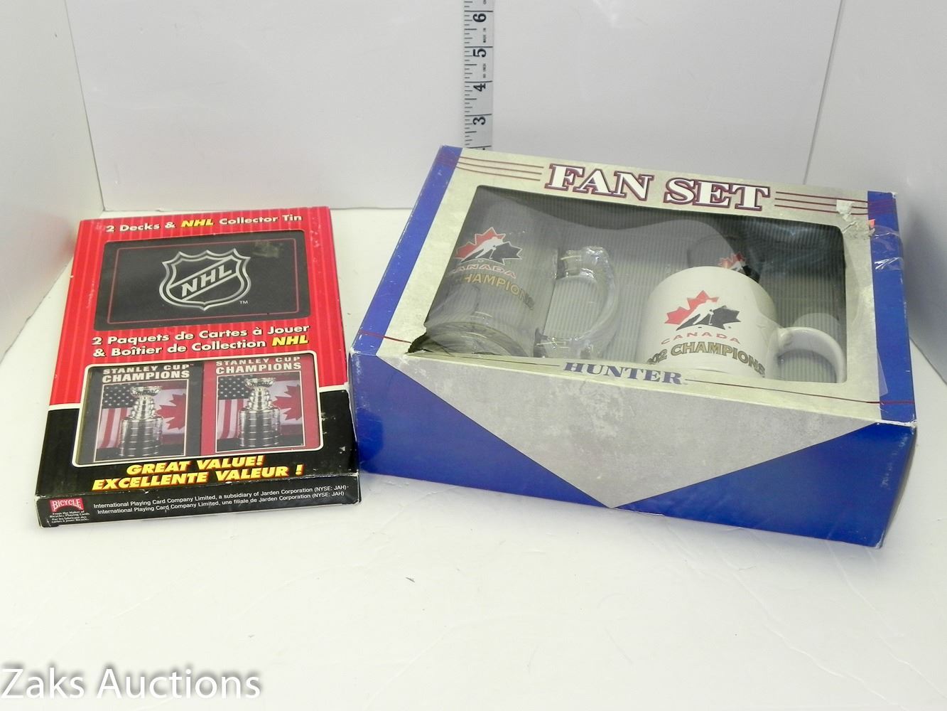 Hunter NHL 2002 Fan Set 3 Pc Set Shot Glass, Coffee Mug, Beer Stein (Unused) w/New NHL 2007 (2) Deck Playing Cards with Collector Tin