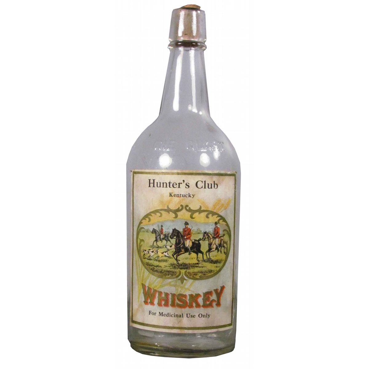 Hunter's Club Whiskey One Quart Bottle with original paper label back and front. "For Medicinal Use Only". The Wiglesworth Bros. Co. 1920. Some minor age discoloration otherwise very good condition.