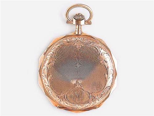 14 K gold, engraved and guilloche decoration on the case, C. M. initials, yellow metal face with Arabic numerals and subsidiary seconds, lever watch in working condition, Switzerland, circa 1930, marked, case number: 84048, gross weight: 65.3 g.