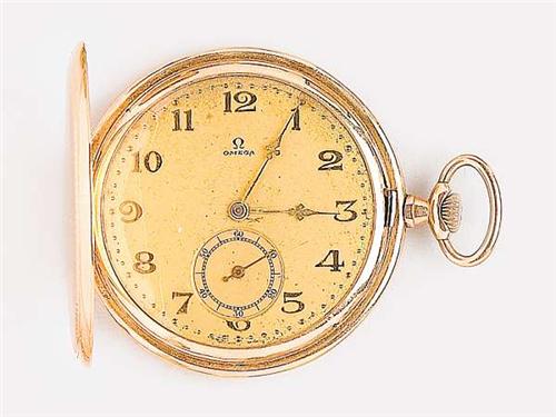 14 K gold, guilloche decoration on the case, yellow metal face with subsidiary seconds, C 35,5 S movement in working condition, case, face and movement are marked Omega, Switzerland, circa 1930, case number: 6493965, movement number: 6184915, gross weight