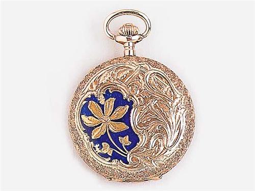 14 K gold, blue enamel and engraved decoration on the case, enamelled face with Roman numerals, cylinder watch in working condition, Switzerland, circa 1900, marked, case number: 317490, gross weight: 24.6 g, damaged enamel, restored hinge.