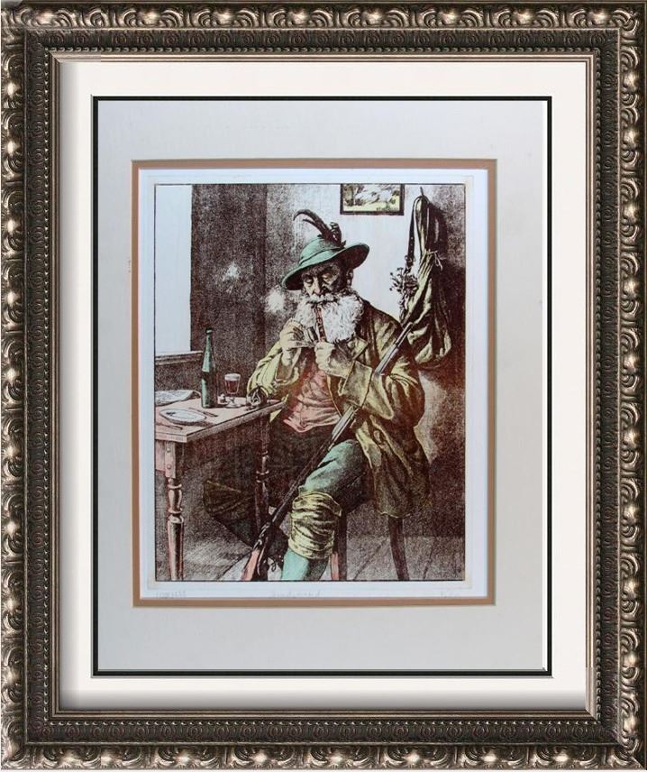 Andes Pecis | Title Of Art: Hunting Season | Medium: Hand Signed By The Artist Original Hand Colored Etching | Stamped On Reverse M.N.G. Kivitelre Engedelyezve | On Paper Matted Size 20X16 | | Edition #: Of 250 Unframed Size: 9 X 11 Inches | Offered Unframed | Value: $ 500