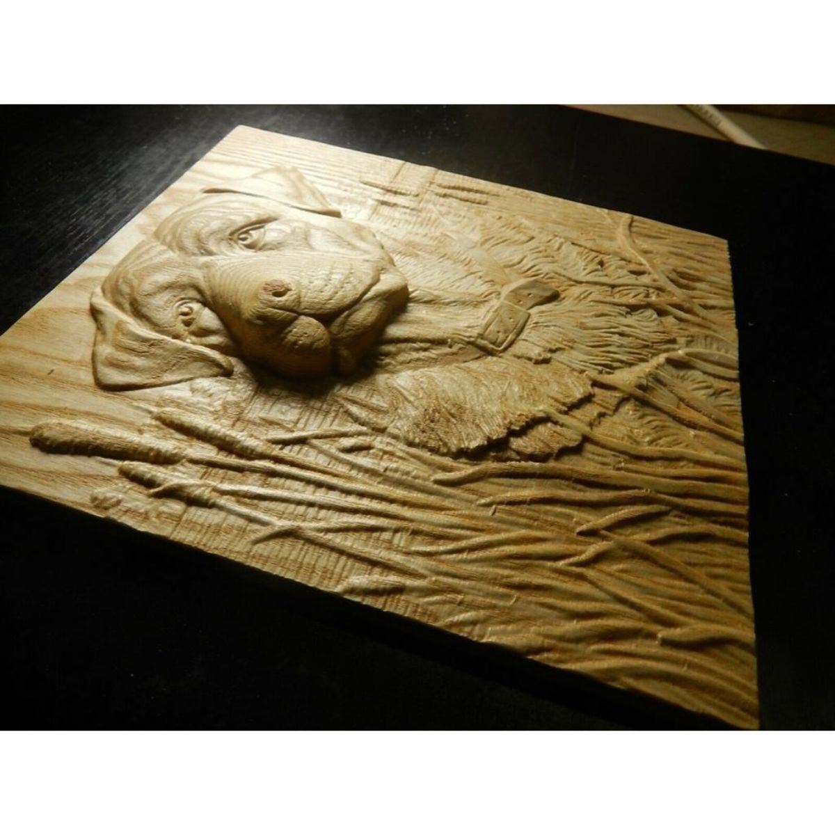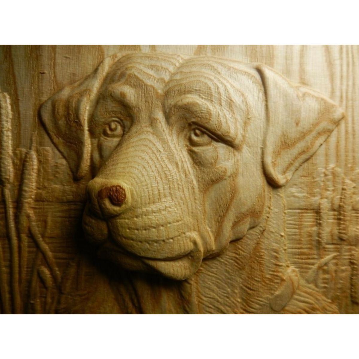 Hunting dog & cattails hand-made plaque from carved ash tree wood. Made by a Lithuanian artisan & finished with beeswax & linen oil. 8" W X 9" H.