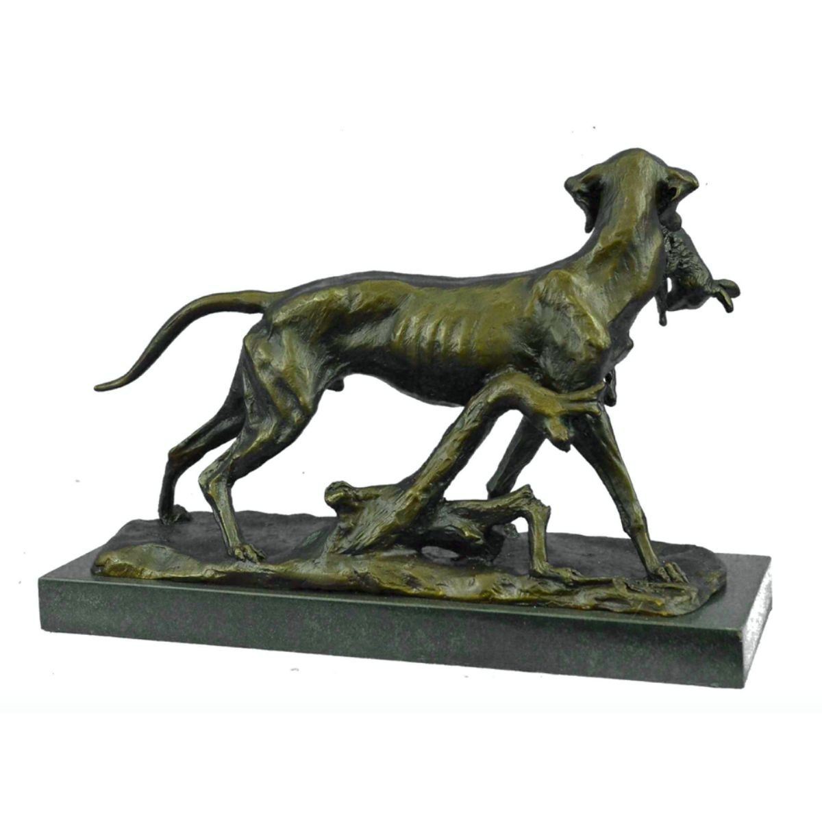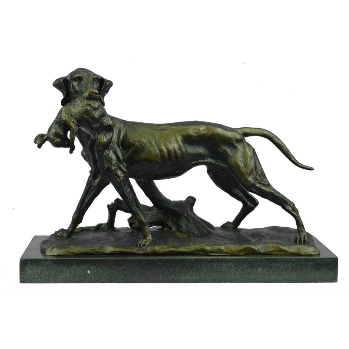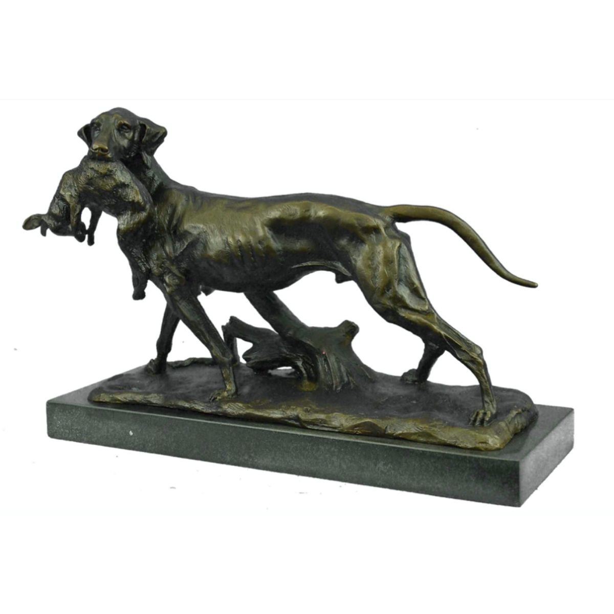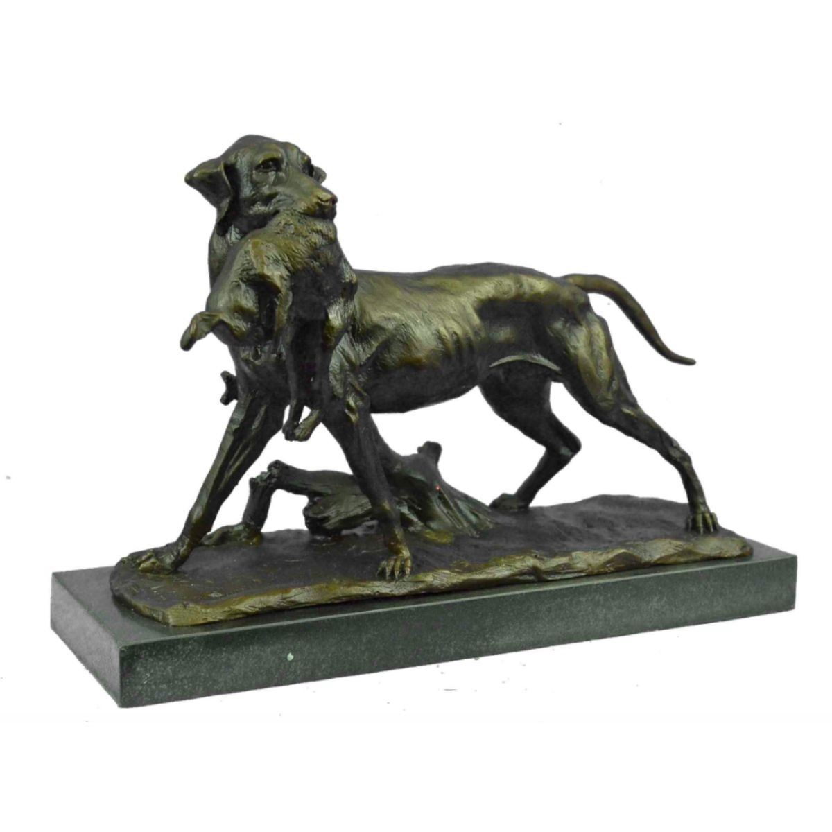 Hunting Dog, Retriever & Rabbit Trophy, Hunting Lodge Sculpture. Lost wax casting method bronze, with brown patina, mounted on marble base. 10" H X 15" W. 17lbs.Â