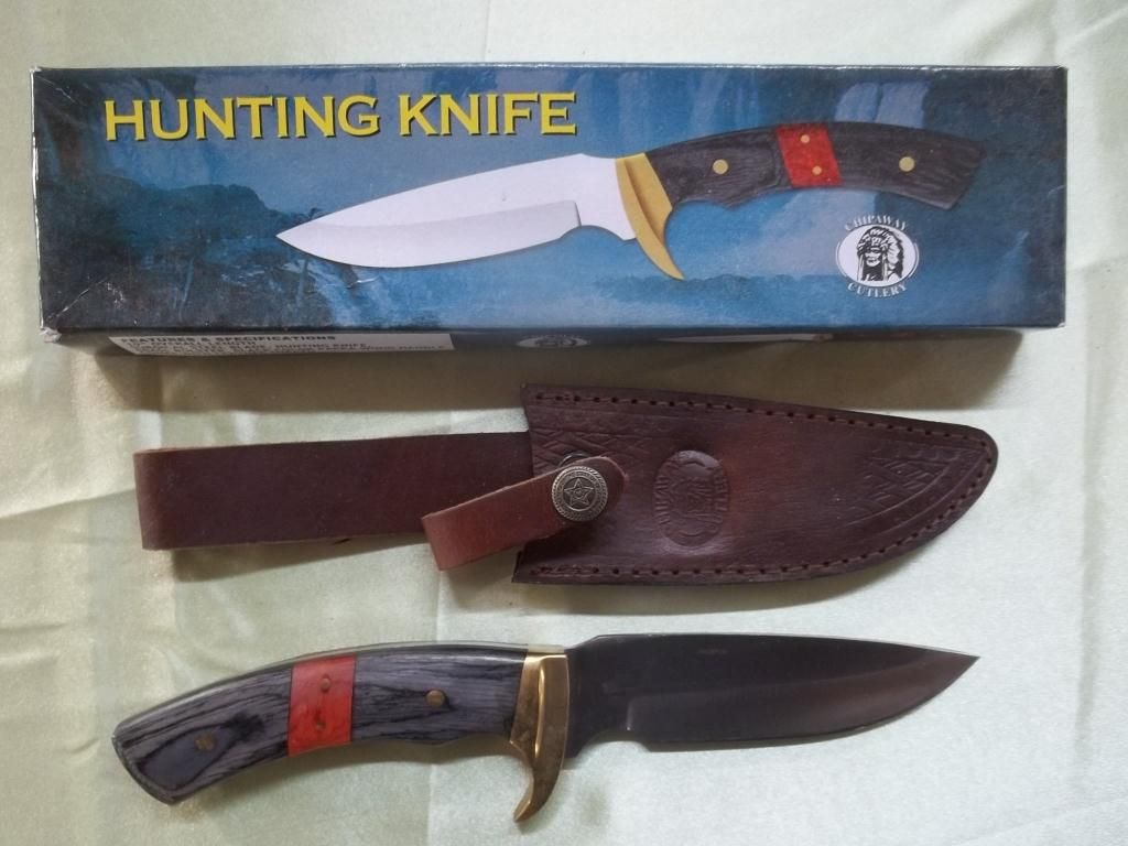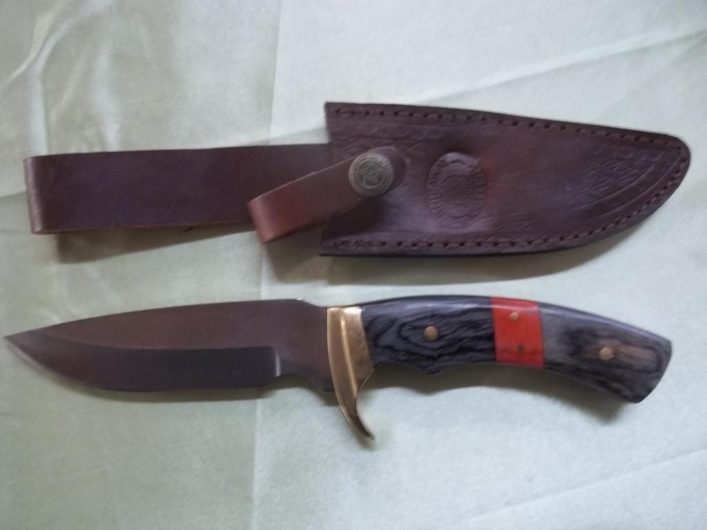 Overall Length 10", Surgical Steel Blade, Brass Bolster, Black Color Pakka Wood Handle & Leather Sheath