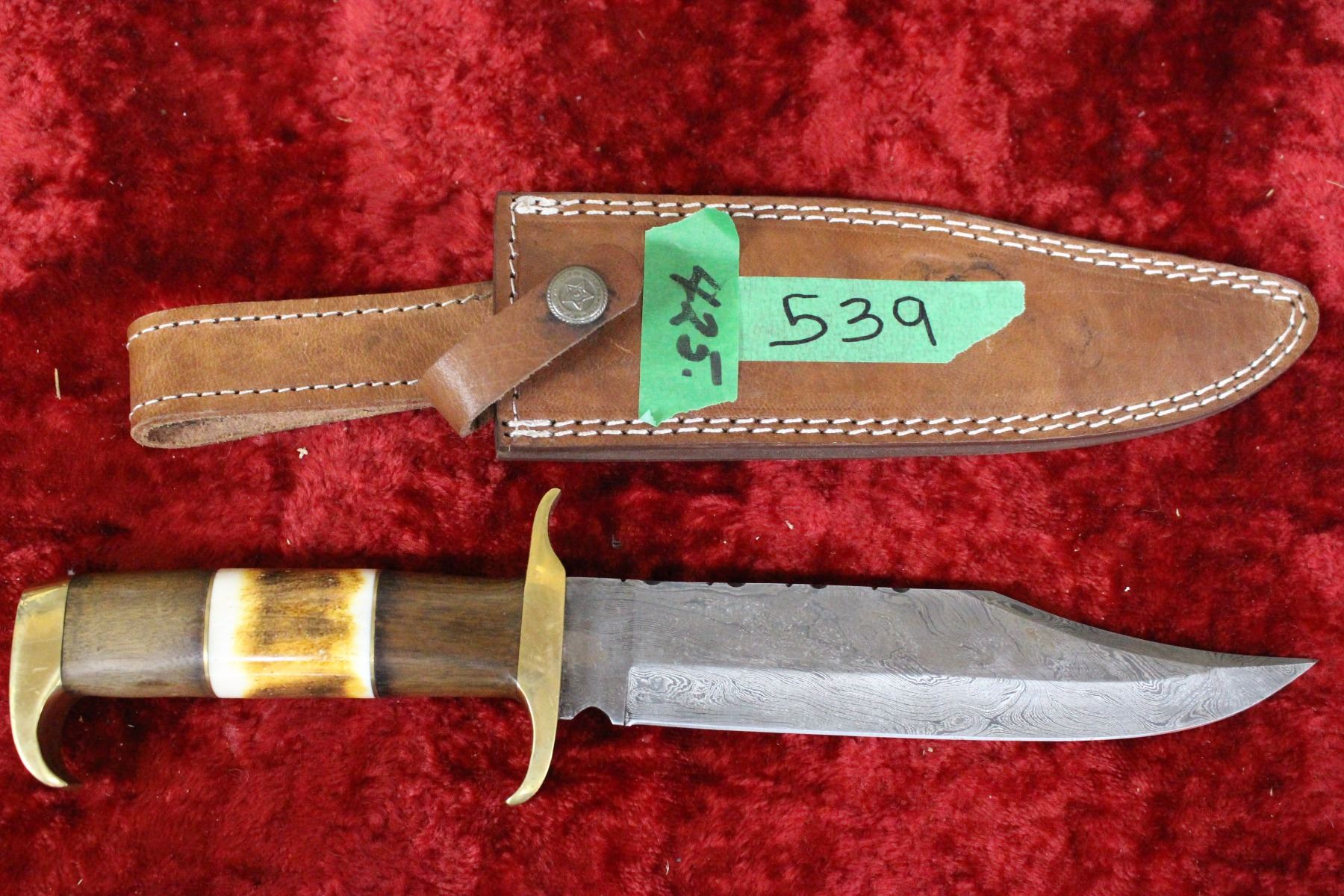 Hunting Knife - Damascas Blade - Wood/Decorated Insert - w/Sheath