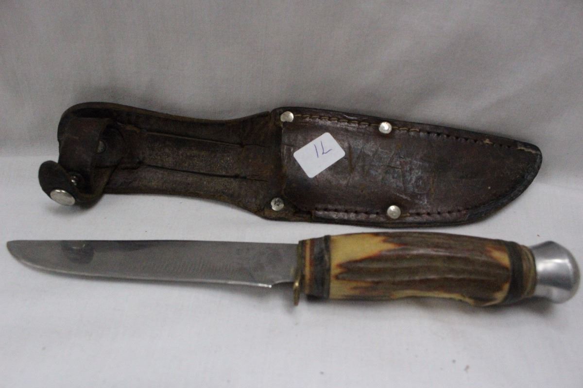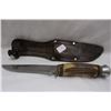 Hunting Knife with Leather Sheath "Elk Carved Antler Handle"