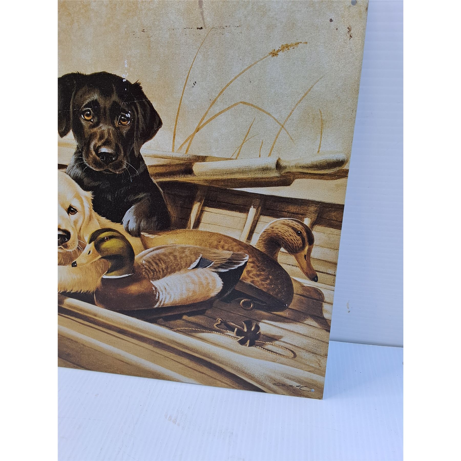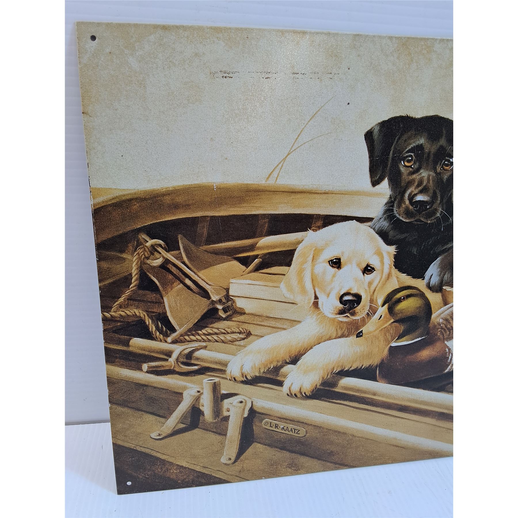Hunting Puppy Scene Metal Picture  - 12  x 16