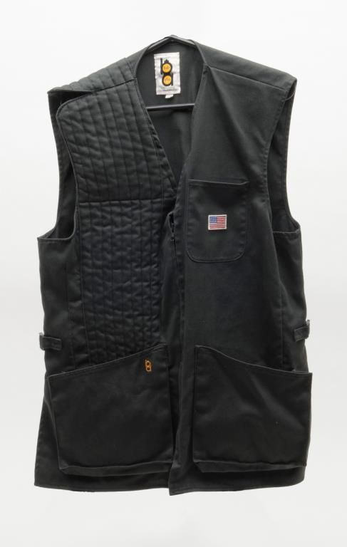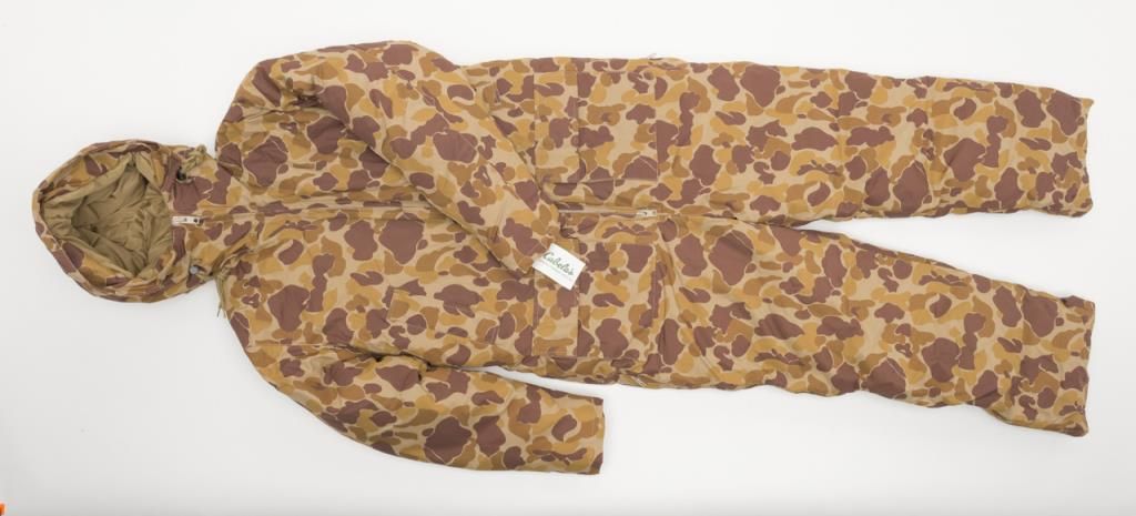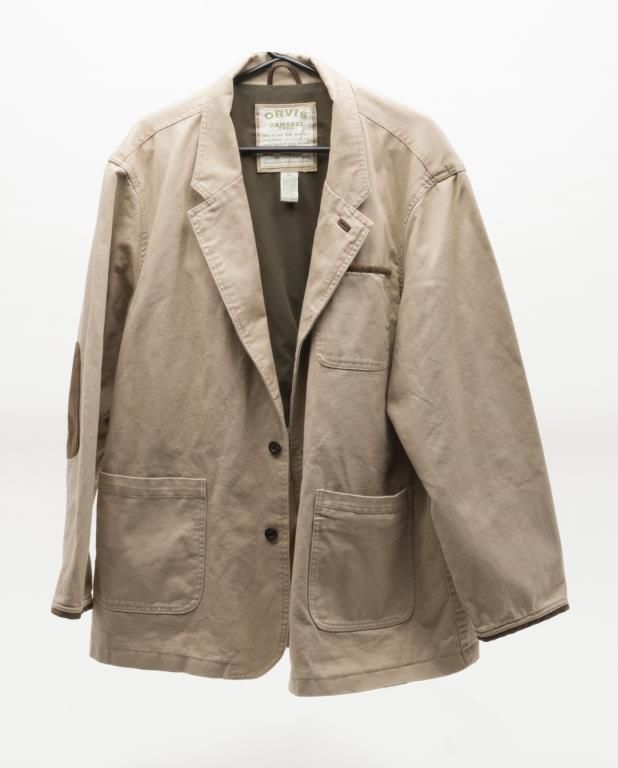 Hunting clothes lot including camo coveralls, size XL Tall; a shooting Vest by Bob Allen; Large and an Orvis Hunting jacket in XL; all in very good condition (coveralls in near new condition). Est.: $100-$175.