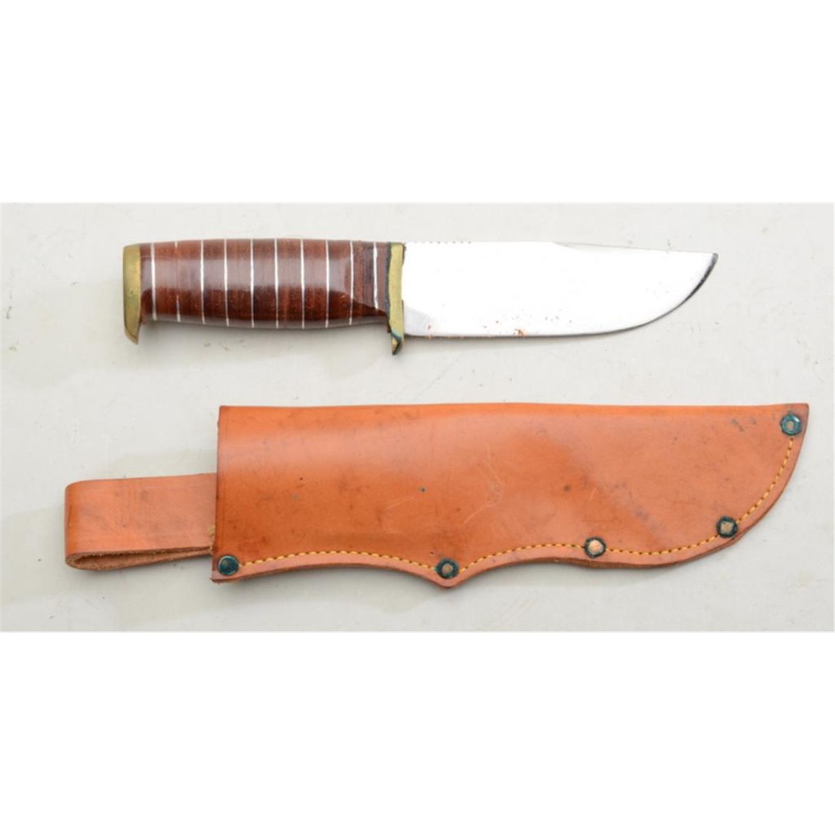 Hunting knife and leather sheath approx. 12” overall, hilt marked “Japan”; in overall fine condition. Est.: $50-$75
