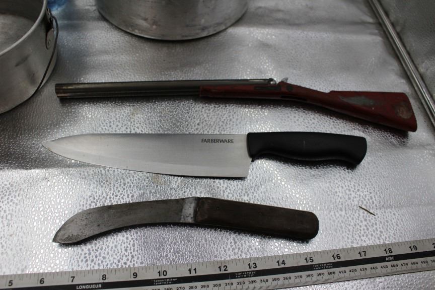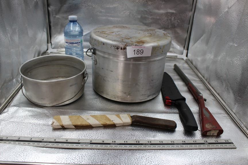 Hunting knifes, camp pots, gun model