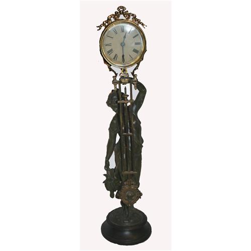 Huntress Swing Arm Clock - Bronze finish in excellent original condition measuring approximately 24 ½" H.  The clock appears to be original throughout.  Dial Marked Terry Co..