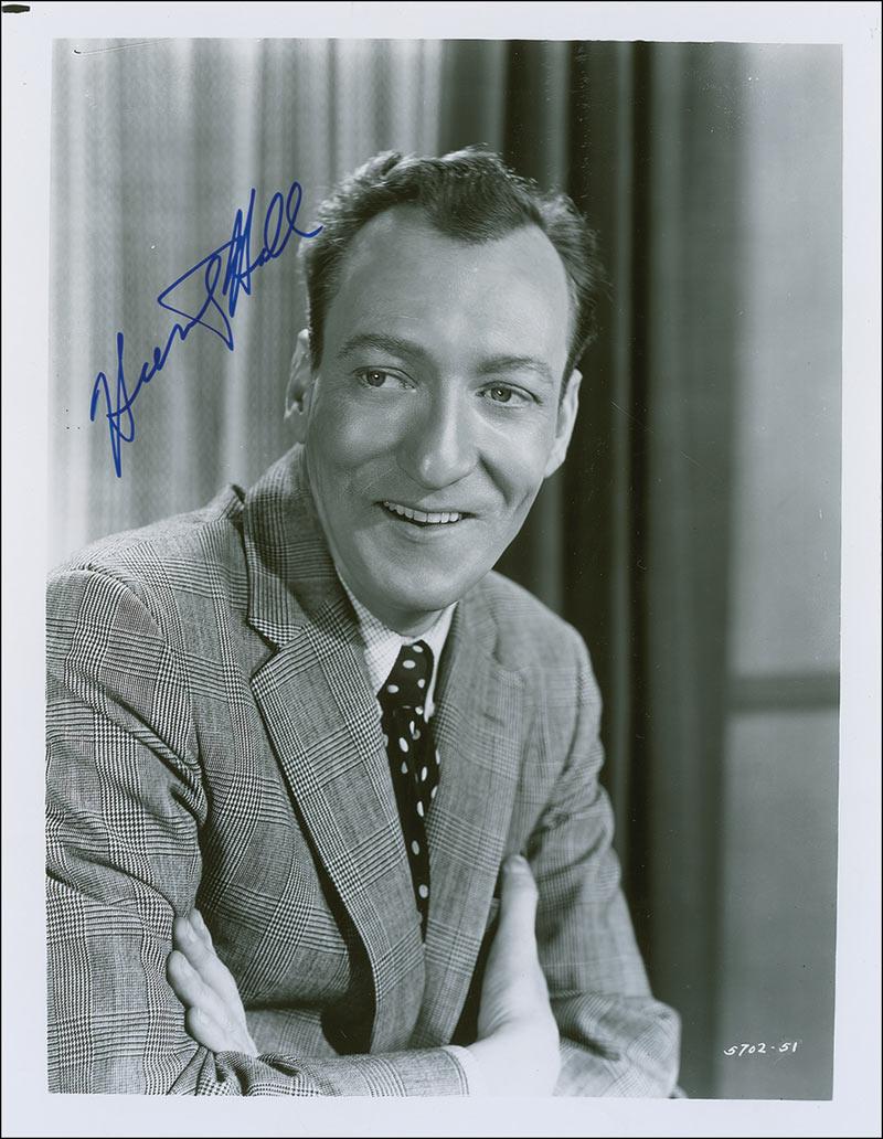 Glossy 8 x 10 photo of a suit-wearing Hall, signed in blue felt tip. In fine condition.