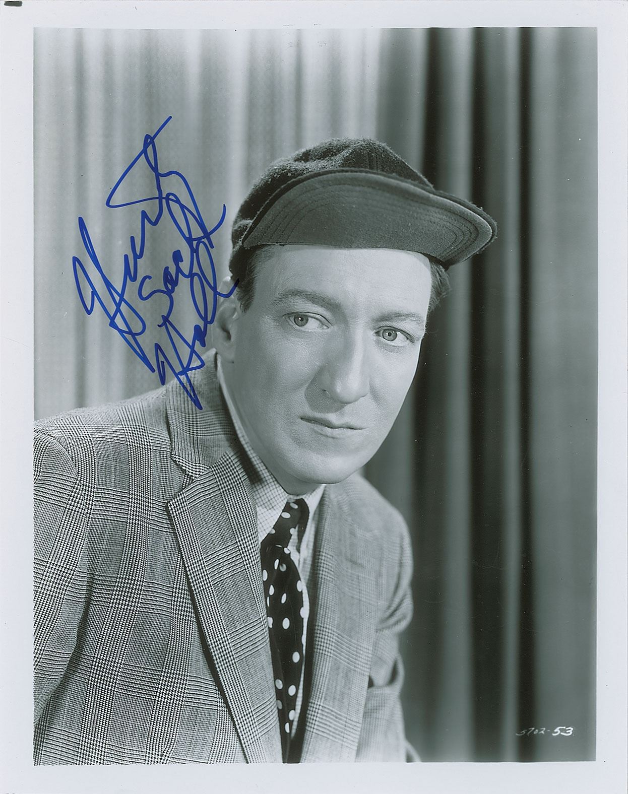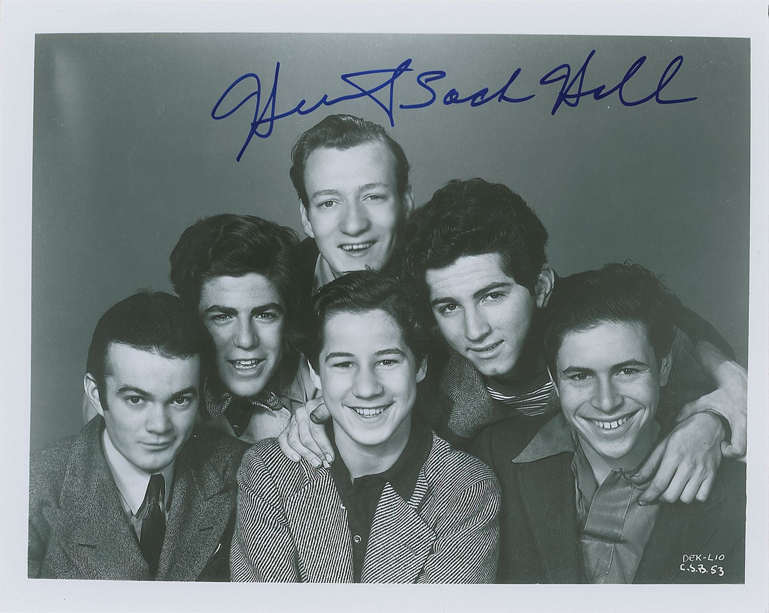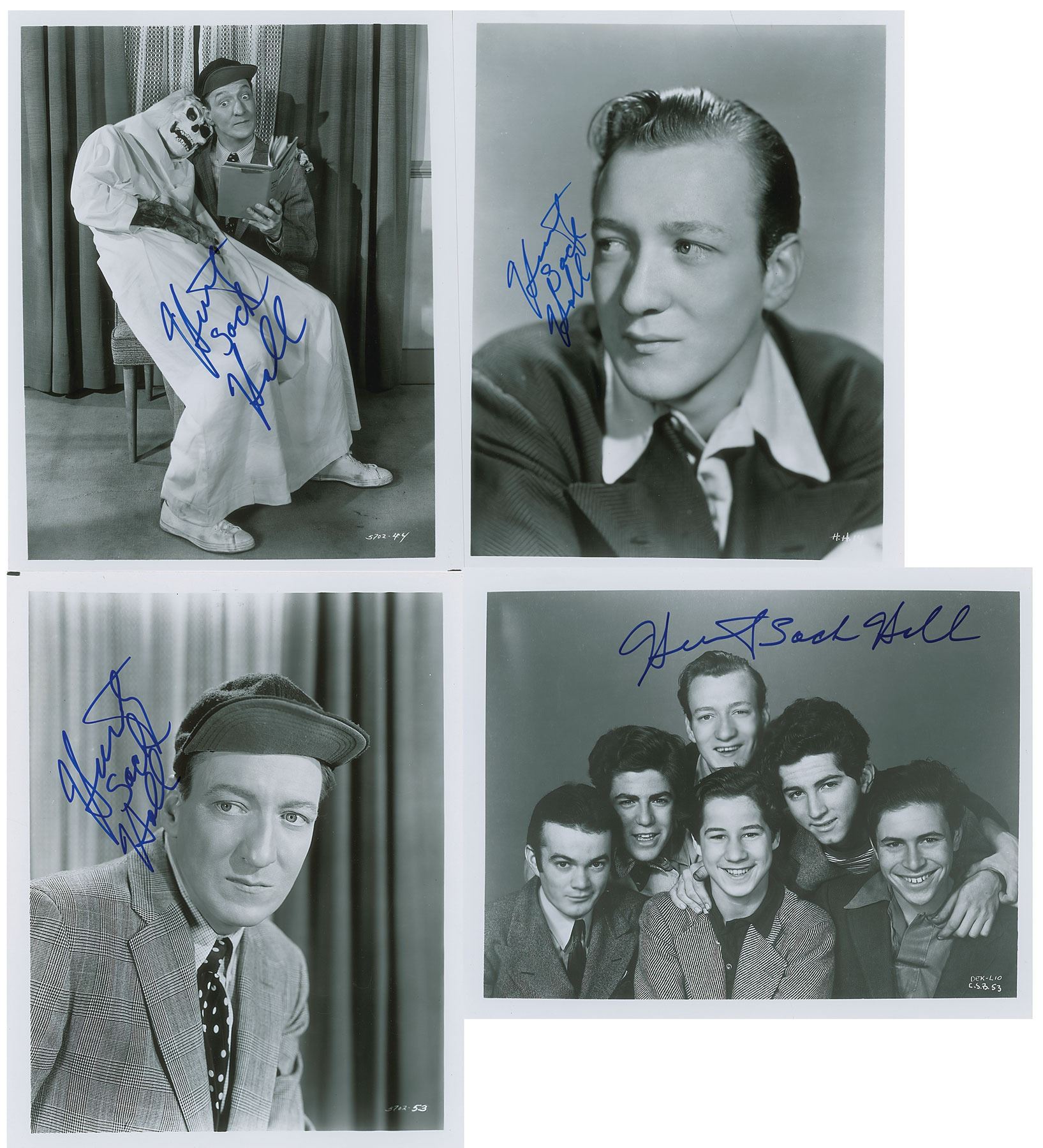 Four different glossy photos of Hall, 8 x 10 and 10 x 8, each signed in blue felt tip, "Huntz 'Sach' Hall." In overall fine condition. Originally obtained by in-person specialist Mike Wehrmann.