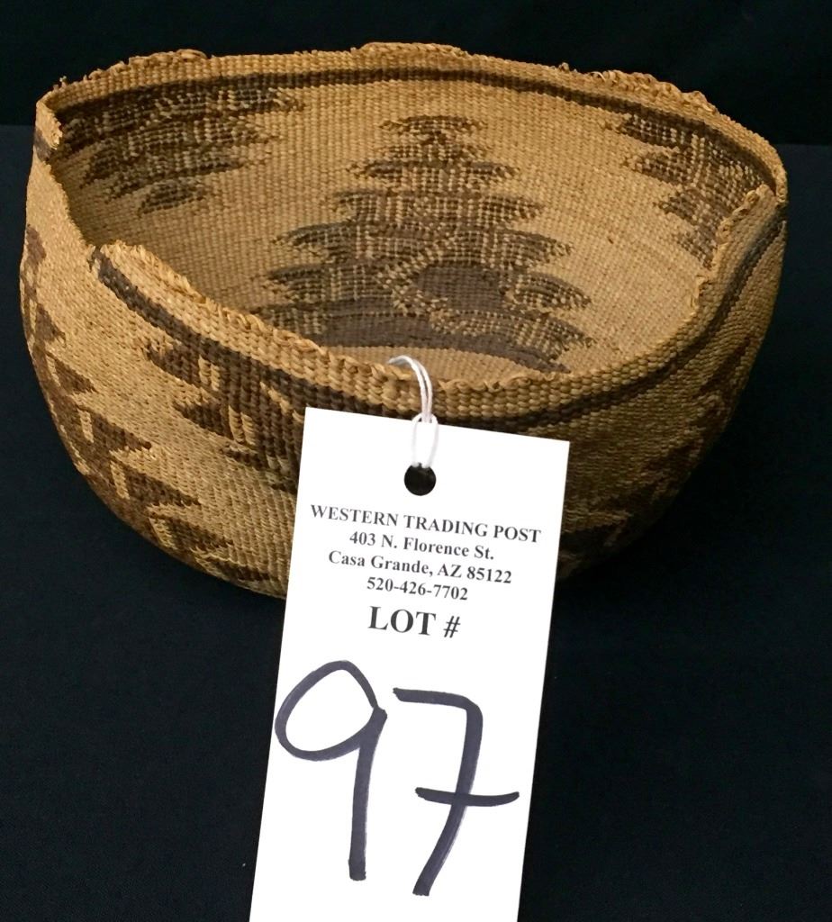 This old Northern California basket/hat measures approx. 8” across and 4” deep. Please note there is damage around the rim area. Please look closely at the pics as they are an important part of our description. Shipping: There will be a $7 handling / packaging fee for shipping this lot. The actual cost of postage will be added on top of that.