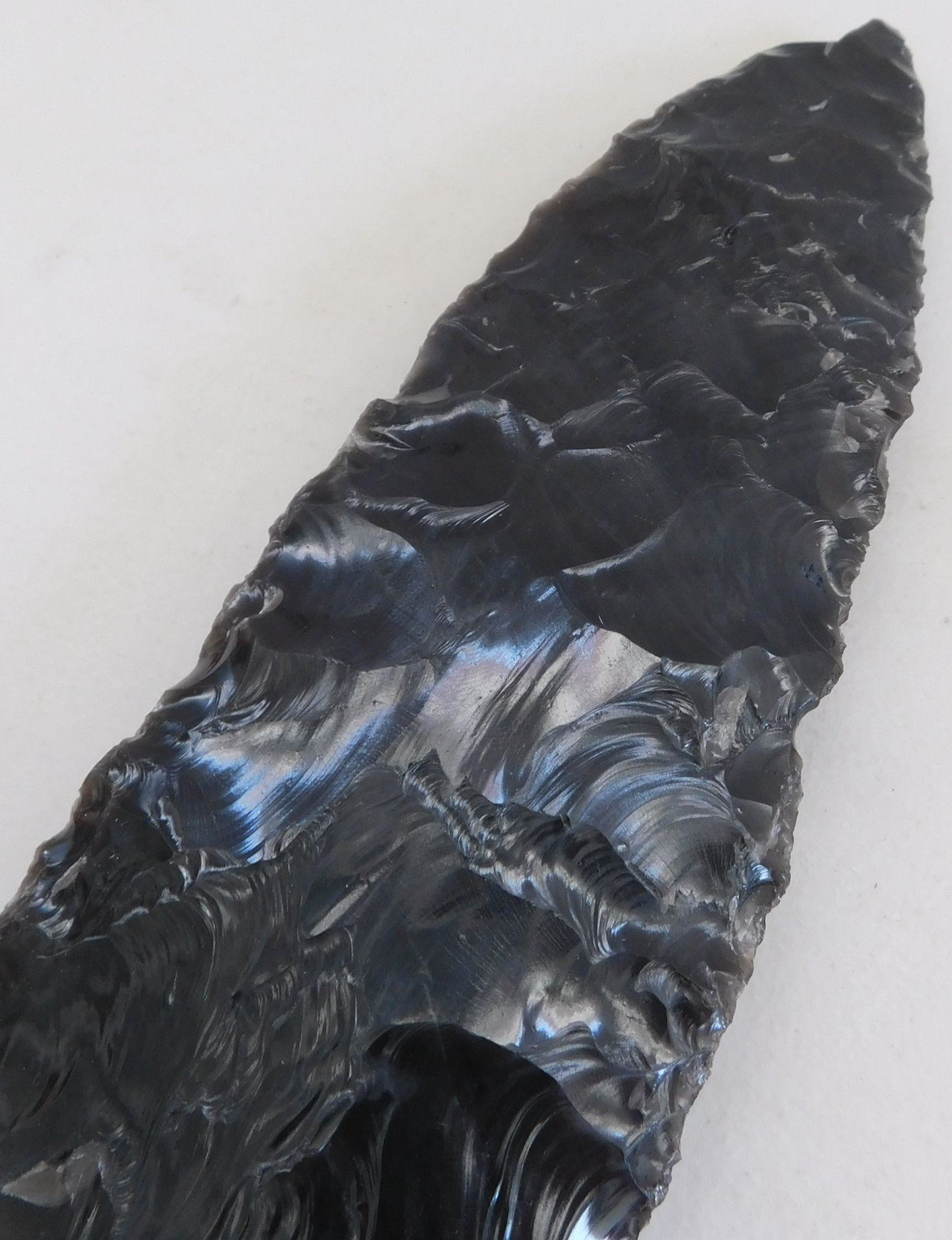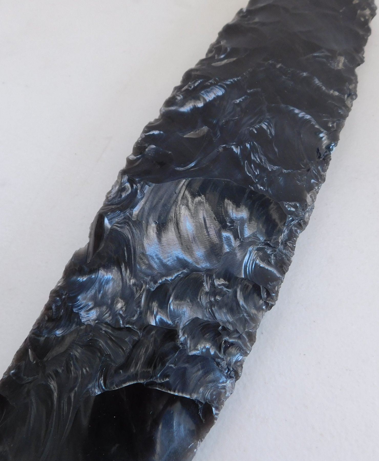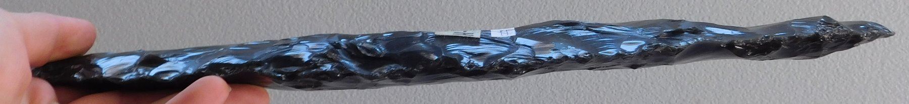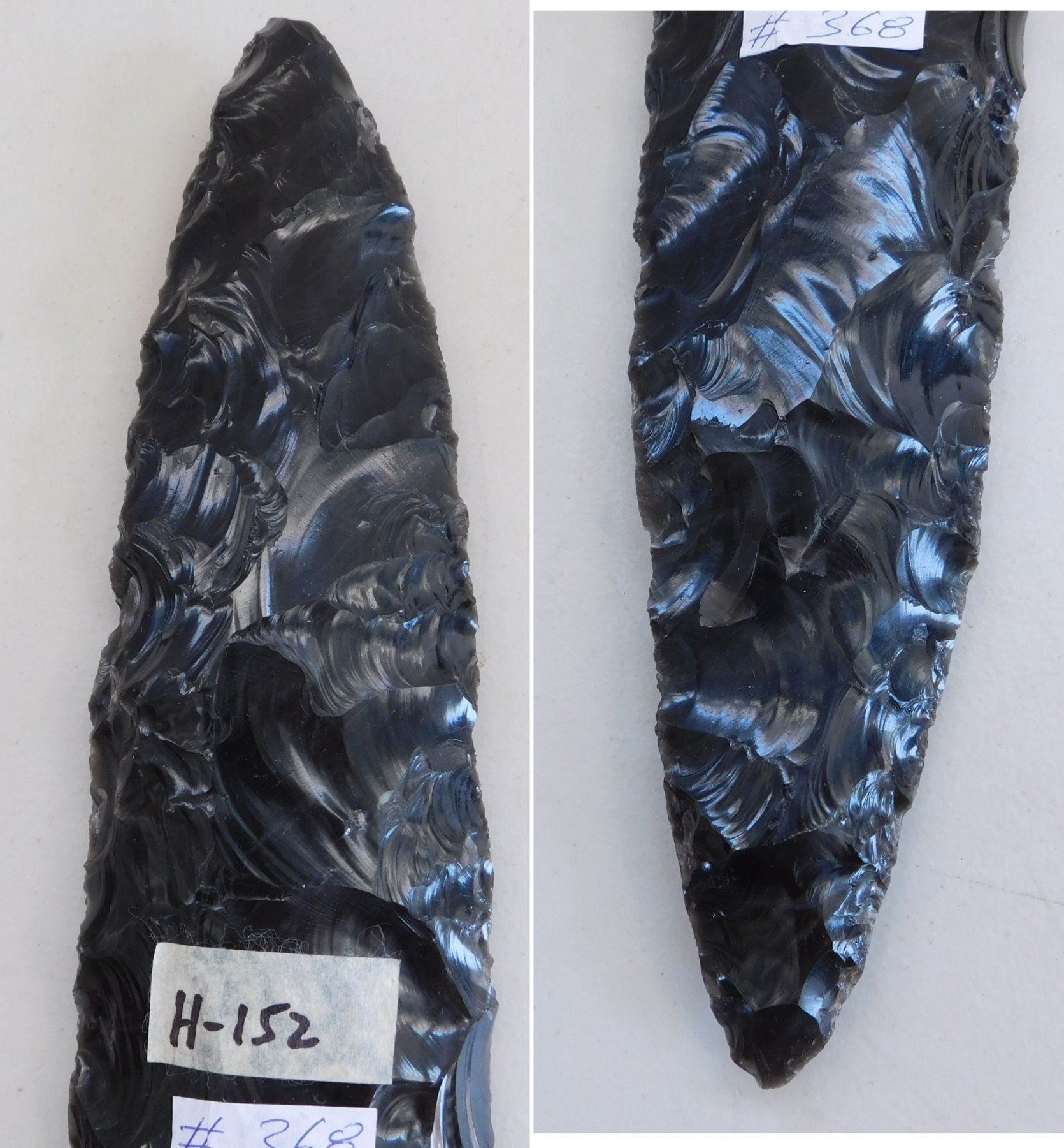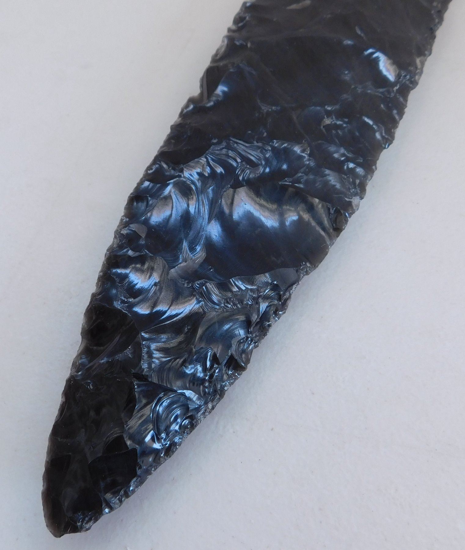 Hupa Treasure Blade, early historic. Made of obsidian, the item measures 15 1/2" x 3". Central California. Nice looking blade. Condition: Minor wear and nicks, see images. Shipping: $34.50 w/insurance and signature, due to length and value.