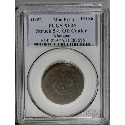 <B>Hupeh Mint Error 10 Cash (1906), </B></I>KM-Y10j, F15 PCGS, struck 20% off center, a nice example, plus Kiangnan 10 Cash (1907)KM-Y10k XF45 PCGS, struck 5% off center.<BR><BR><b>Shipping:</b> Coin/Currency (<a target="_blank" href="http://www.heritageauctions.com/common/shipping.php">view shipping information</a>)