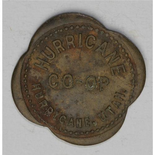<B>Hurricane Co-op, Hurricane, Utah, Circulated.</B></I> Good For 10 Cents in Trade. Scalloped, brass, 28mm.