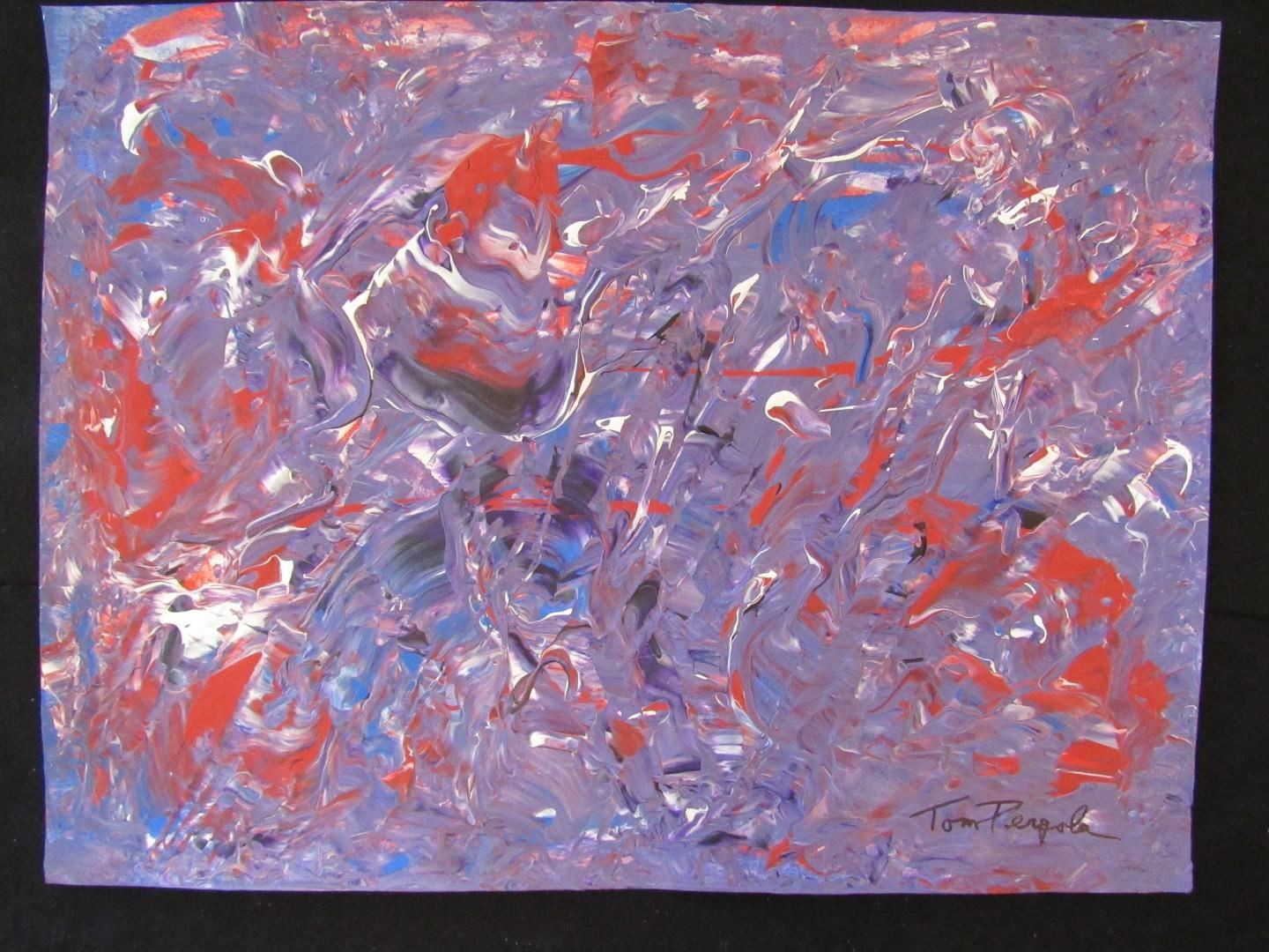 A colorful abstract acrylic painting by California artist Tom Pergola. 18x24" on irregular acid-free art paper, with COA.