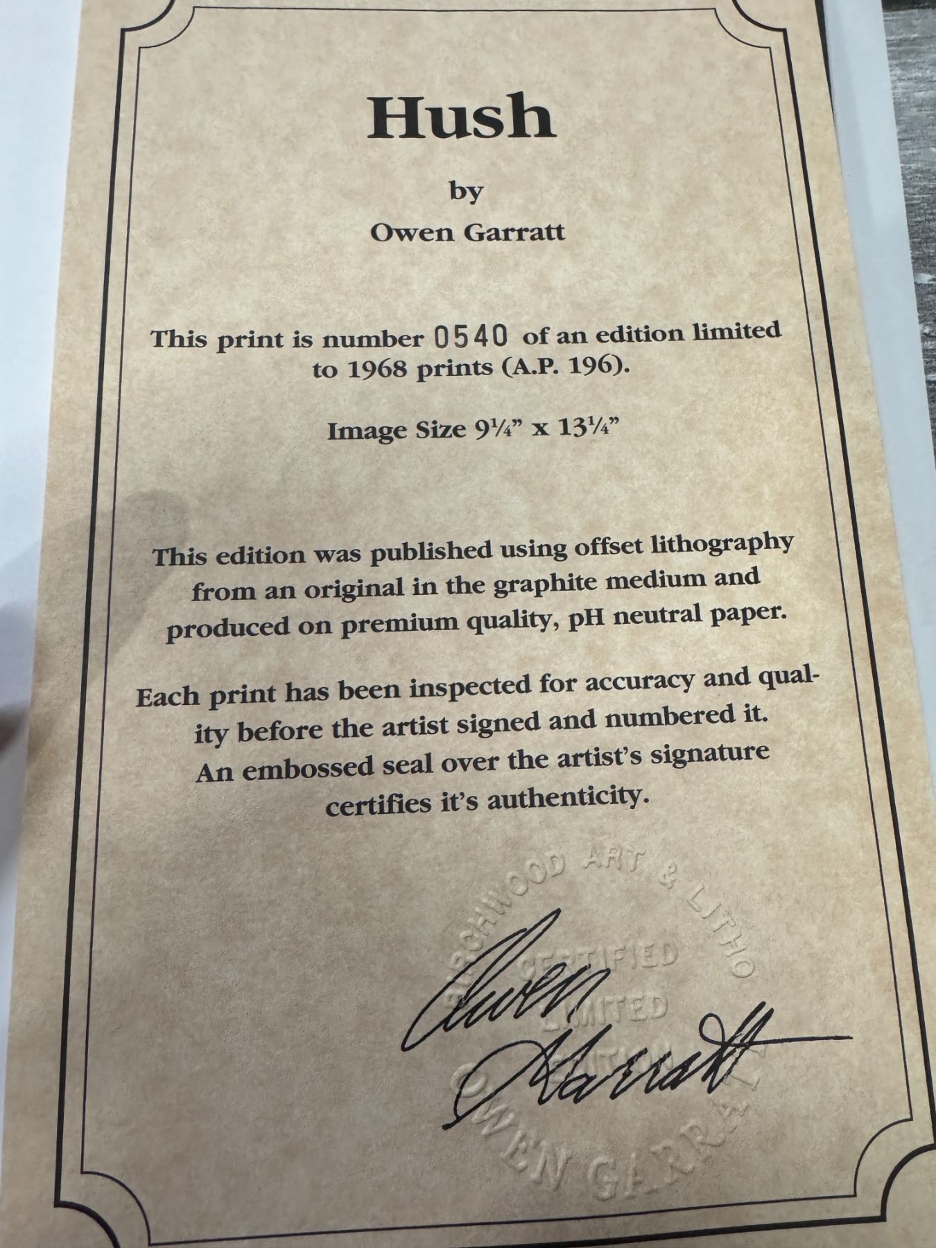 Hush by Owen Garrett number 540/1968