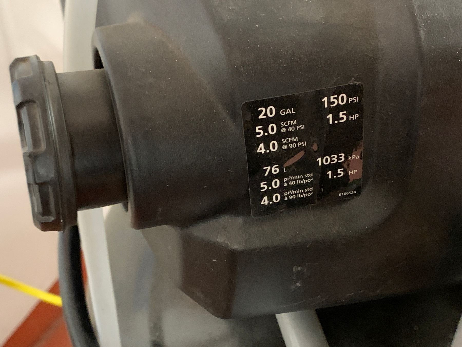 Huskey Model:772657 Portable air compressor- 20Gal/150PSI/1.5Hp/76Lt