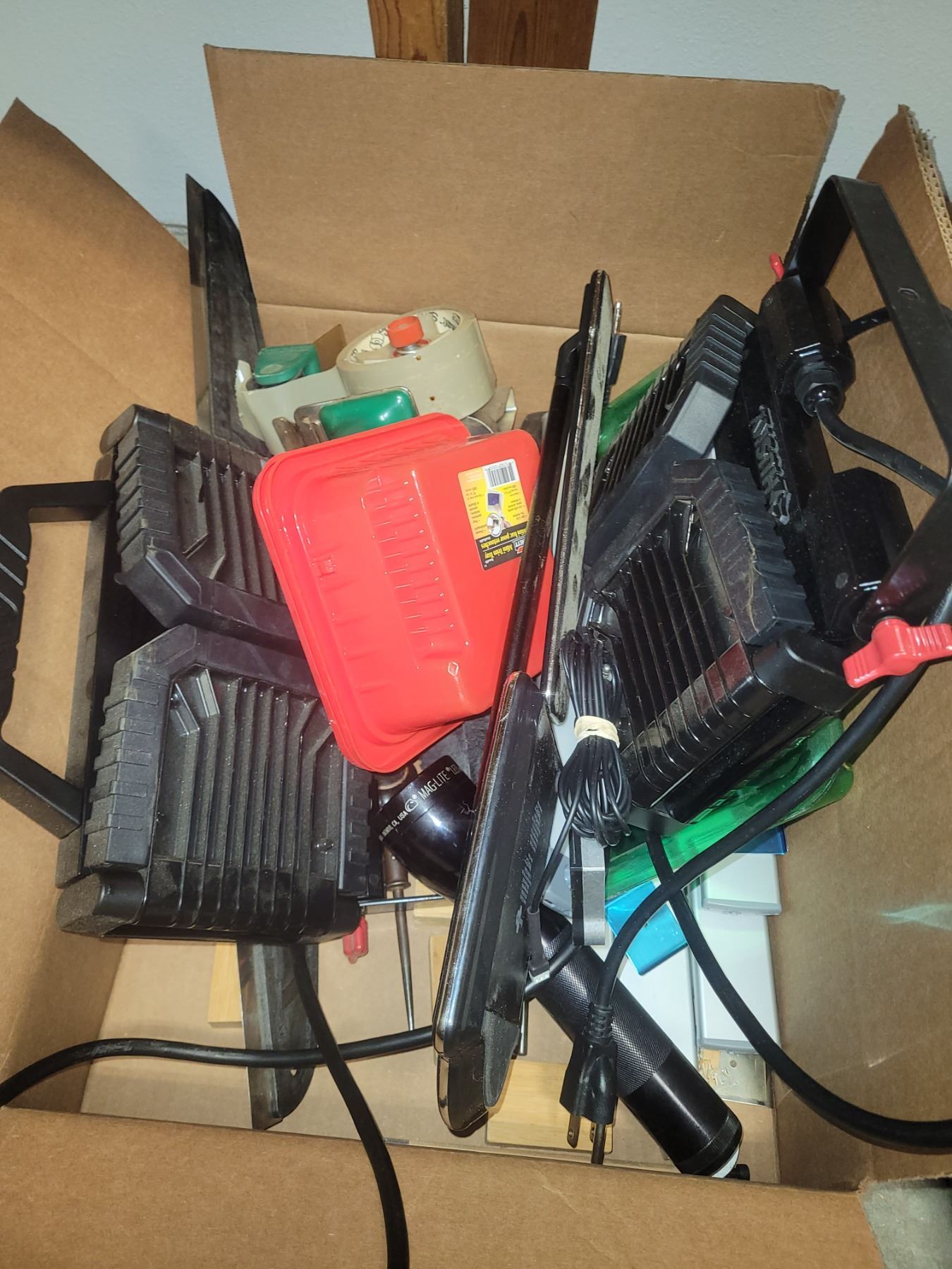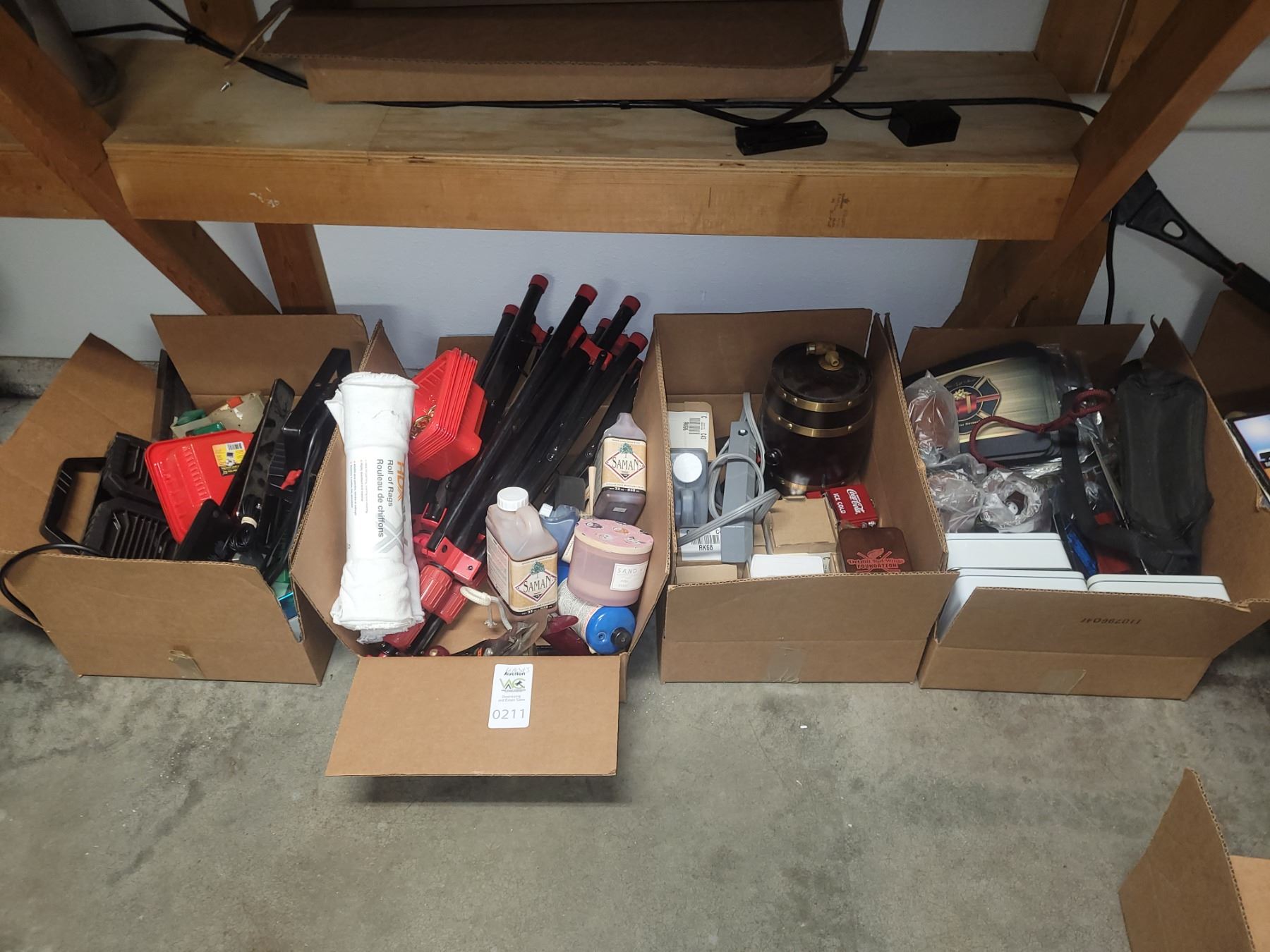 4 boxes of misc items for workshop and Husky lite and Bluehive power pack. Pickup at 10 am