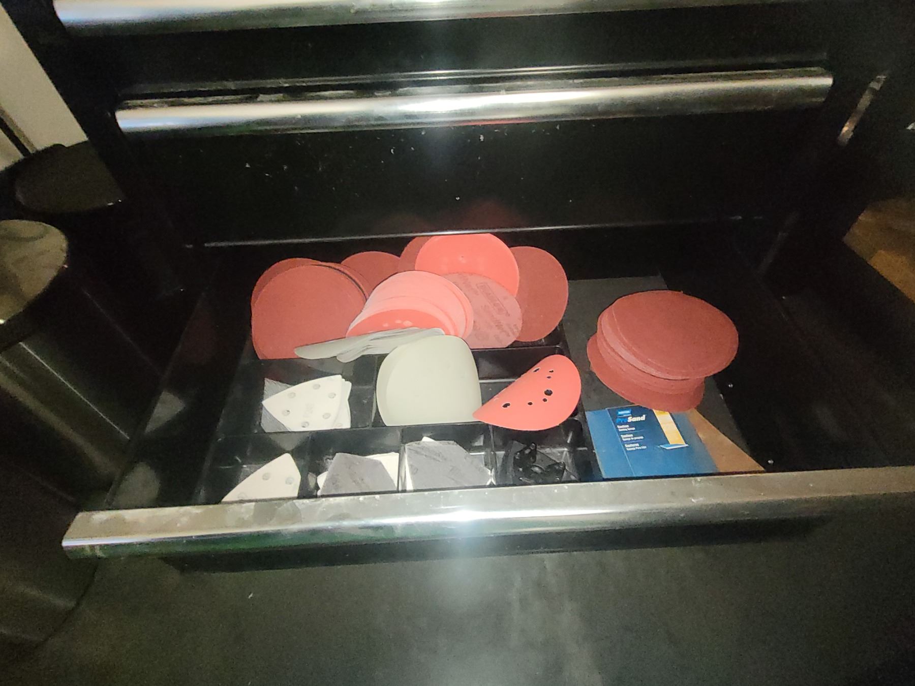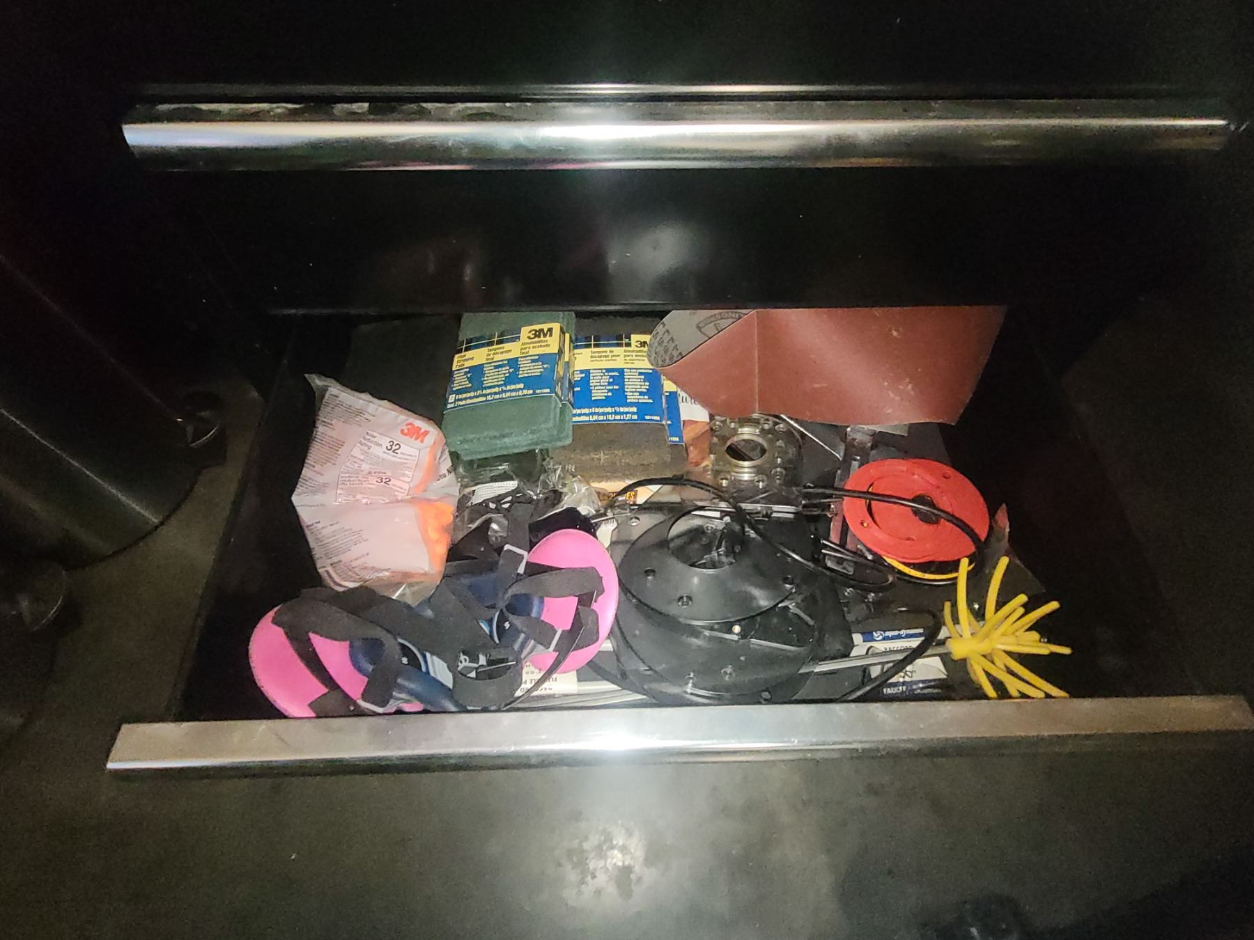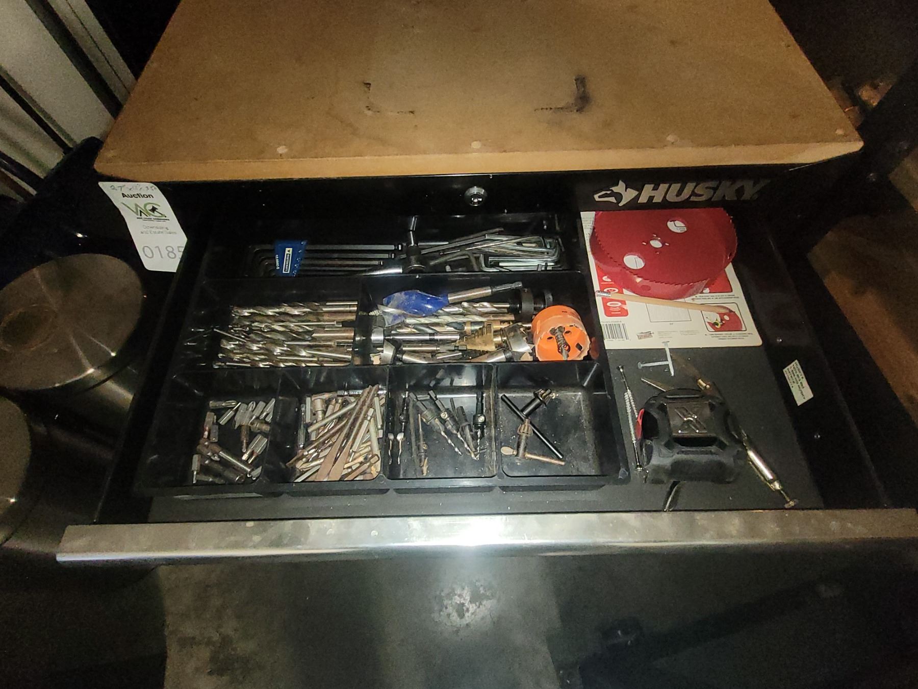 Top drawer has drill bits all contents in drawers included, (contents on top not included). . 27x1835. Pickup at 10 am