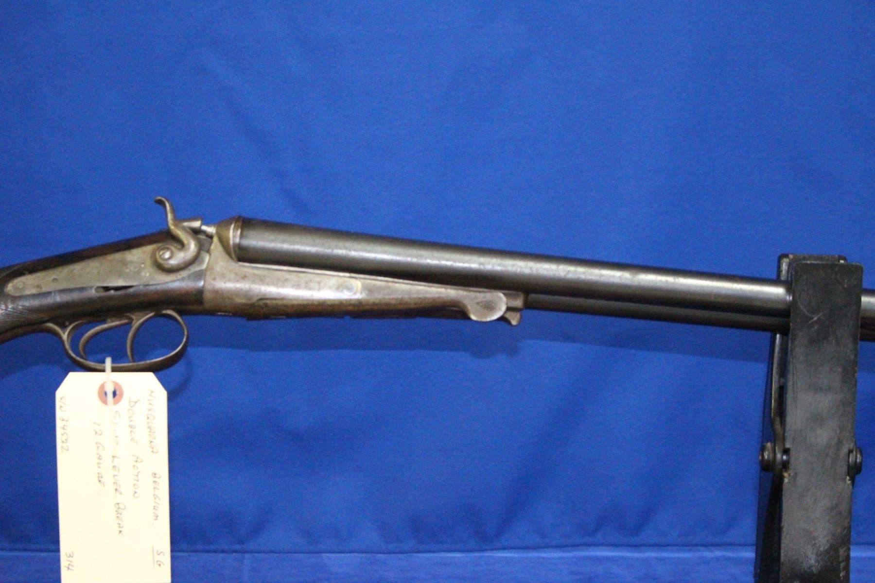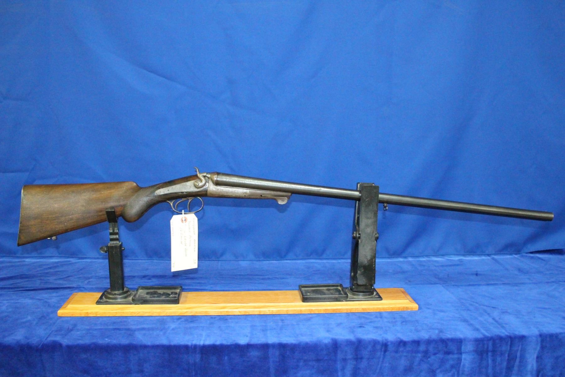 12 ga.; Slide Lever Break Action; 29" Double Barrel; Bore shows obvious signs of use; S/N 34522