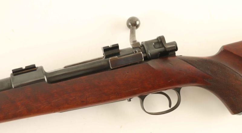 Bolt action 30-06 Springfield with a blued finish in good condition. Bolt shows scattered light pitting. Scope mounts, hooded front sight and Monte Carlo stock. NRA Very Good ***Modern Firearm***