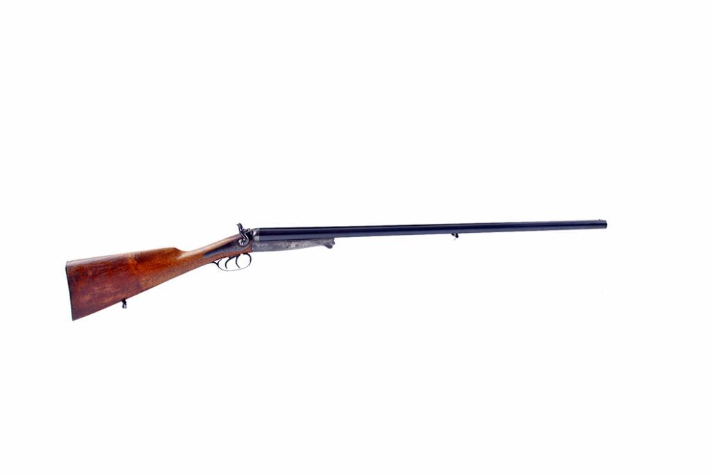Husqvarna Mdl 20 16 ga SN:50628 Nice double barrel exposed hammer 16 gauge shotgun made in Sweden about 1907. Blued 29 1/2" barrels, case color receiver and action release lever, straight grip stock with steel butt plate, double triggers, sling swivels,Nice double barrel exposed hammer 16 gauge shotgun made in Sweden about 1907. Blued 29 1/2" barrels, case color receiver and action release lever, straight grip stock with steel butt plate, double triggers, sling swivels, good bores and action.Condition: Very good. Blue is very good with just a few beginning rust spots. Case color is thinning in high use areas but is still about 40%. Stock finish is thinning to bare wood in some areas but is still solid with no cracks. Good gun!