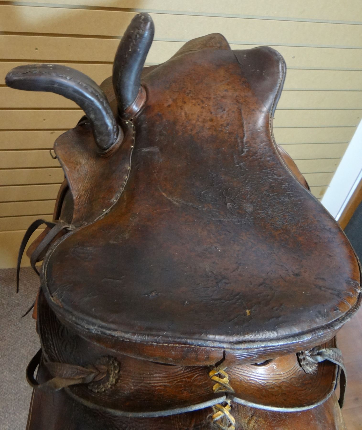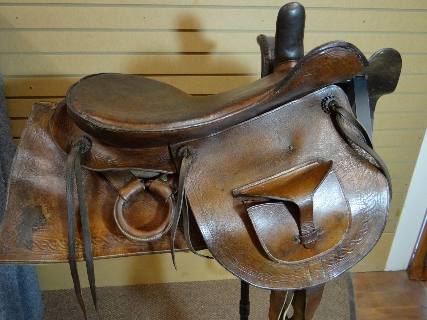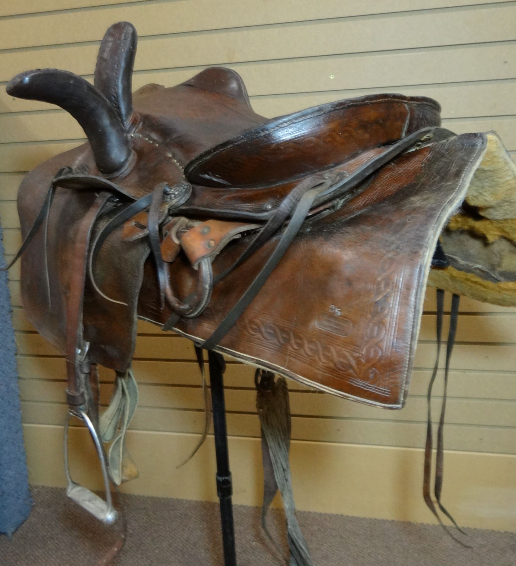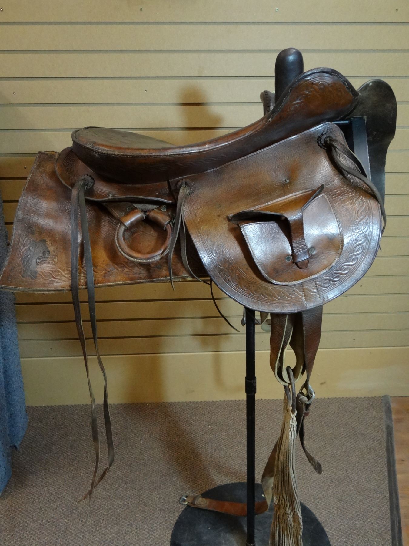 Hutchins & Reilly (Calgary) British Northwest Territory side saddle w/pocket, ca. 1880's, dble. rigged, #25, rare