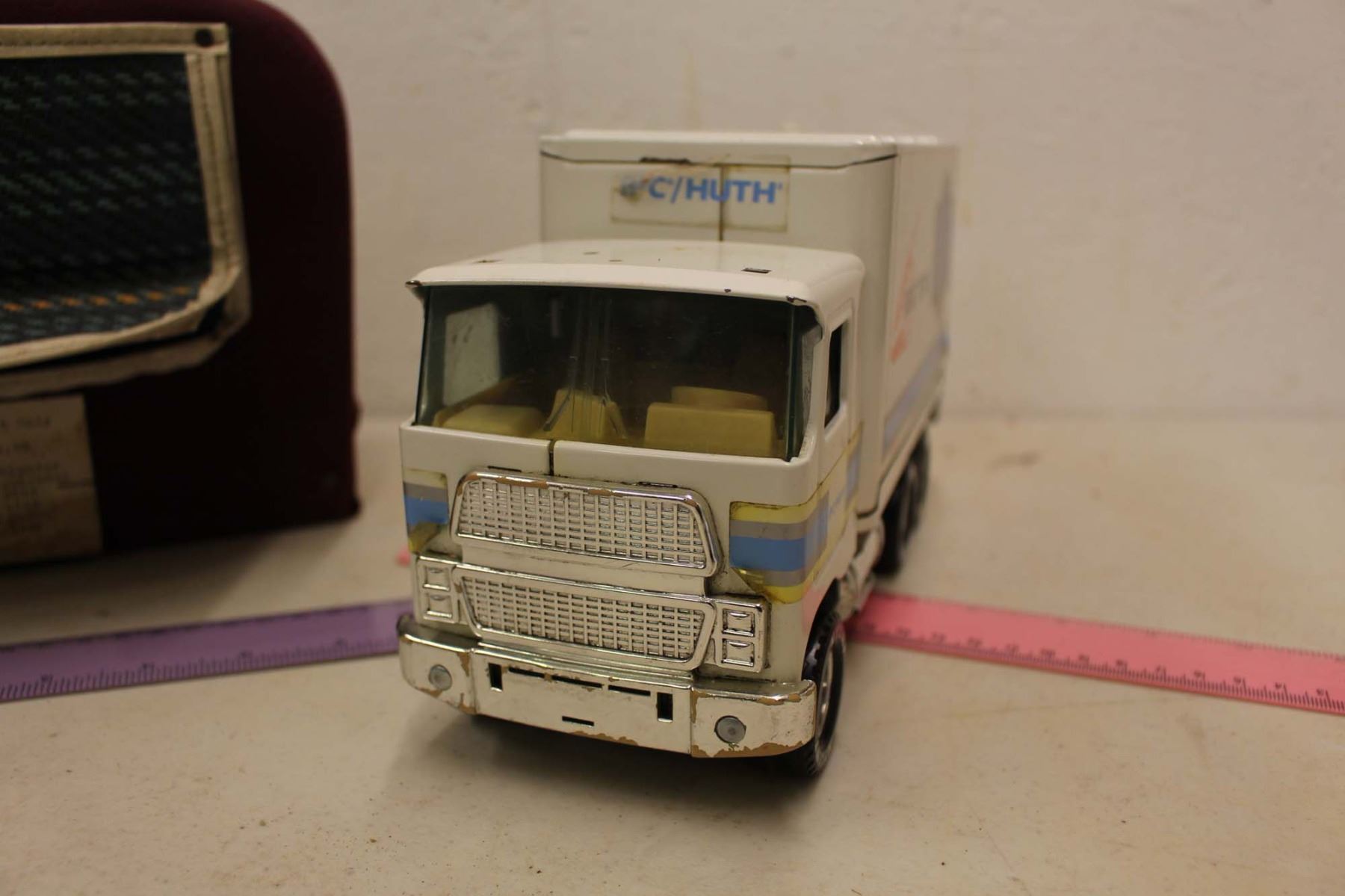 Huth Silver Knight Toy Semi Truck & Salesman Sample Car Front Seat (10" x 7.5")