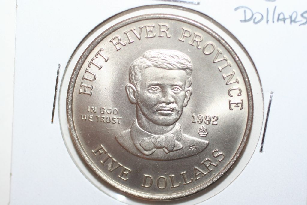 This lot is a 1992 hutt river province $5 coin; albert spalding "father of baseball"