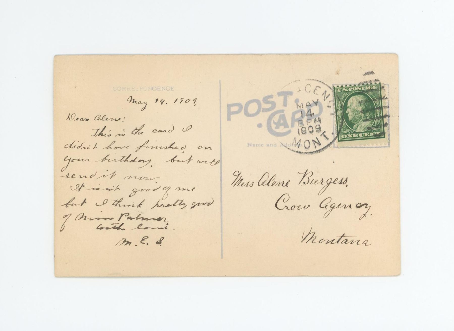 Taken on the Crow Agency 1909. Provenance: Aline Natalie Burgess Claremont Los Angeles, daughter of James Gregor Burgess builder of the Burgess Baptist Church Crow Agency Montana, through Decent.