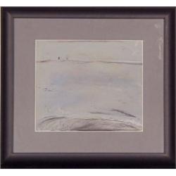 Huws (20th Century), SEASHORE II, acrylic painting with manipulation on paper, 10 x 13", framed...