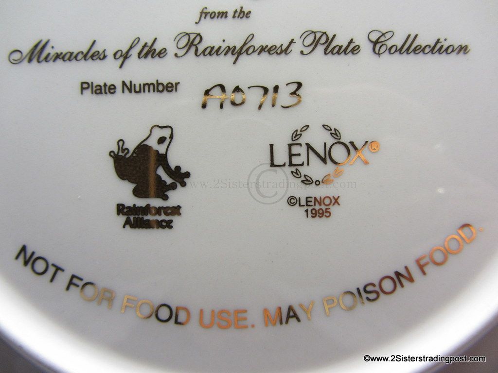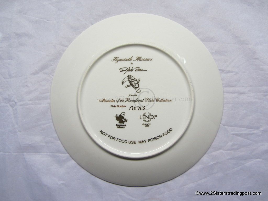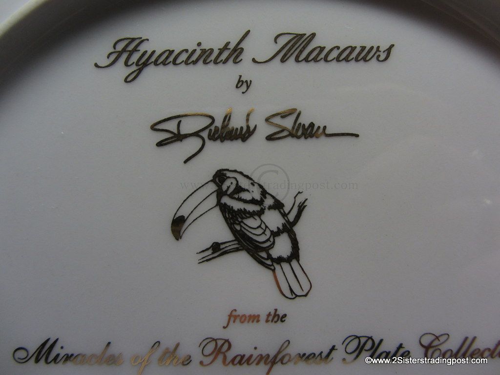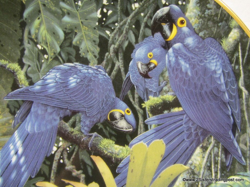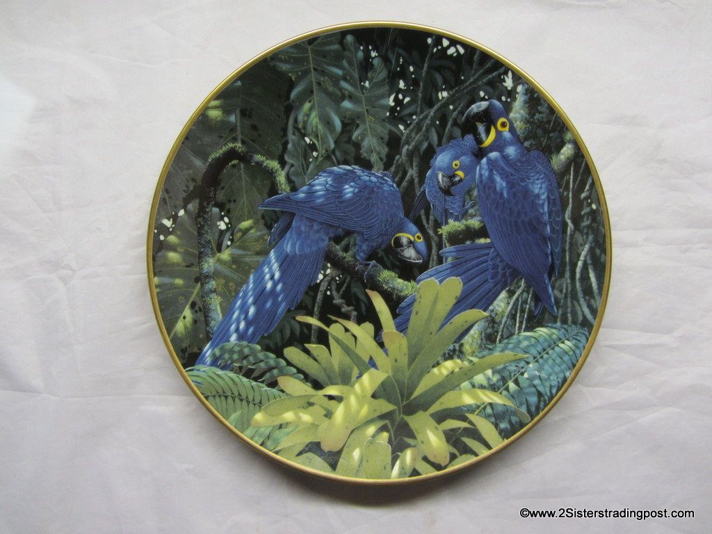 Miracles of the Rainforest Plate Collection, art work by Richard Sloan "Hyacinth Macaws. The plate is one of five available in the series, all are in mint condition made available by Lenox Plate #A0713.