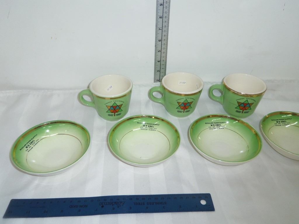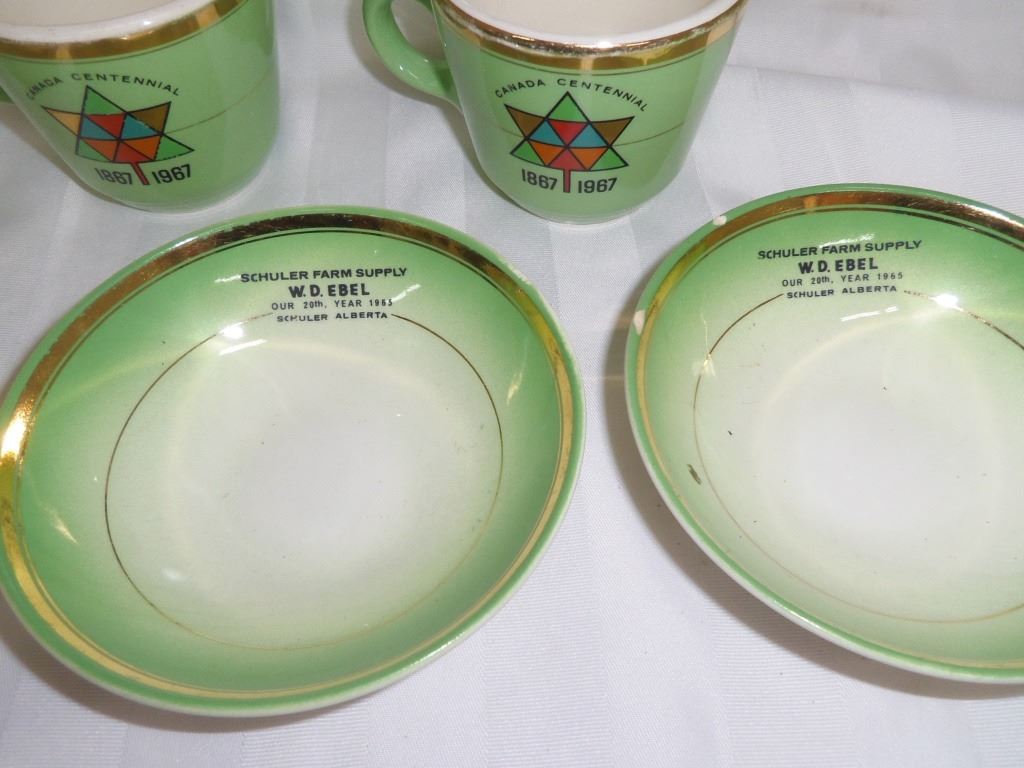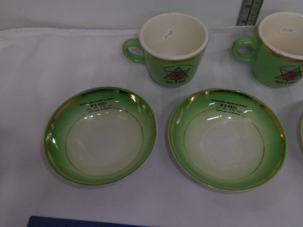 Hycroft Advertising 3 Cups and 4 Small Bowls