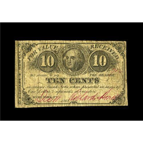 <B>Hyde Park, PA- Richards & Howell</B></I> 10¢ Dec. 18, 1862<BR>We do not often run into notes from this hamlet outside of Pittsburgh. Add the popularity of Fractional lookalikes and this piece should create some bidding interest. <B>Fine.</B></I><BR><BR><b>Shipping:</b> Coins & Currency (<a target="_blank" href="http://www.heritageauctions.com/common/shipping.php">view shipping information</a>)