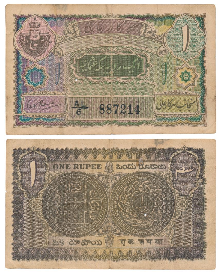 Hyderabad, Rupee 1, 1946, signed C.V.S. Rao, (J&R 7.3.6). Very Fine, Rare.