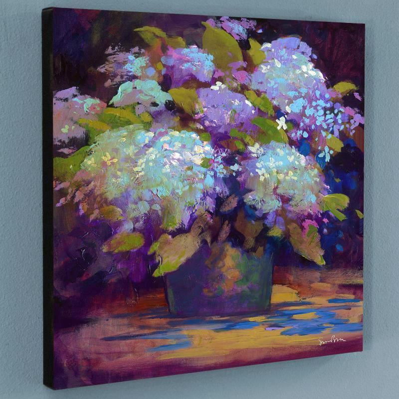 "Hydrangea" is a numbered limited edition giclee on canvas by Simon Bull bearing the artist's authorized signature. This piece comes gallery wrapped and includes a Letter of Authenticity. Measures approx. 20" x 20" x 1.5" (image). This item requires special handling and may have a longer than usual turnaround.