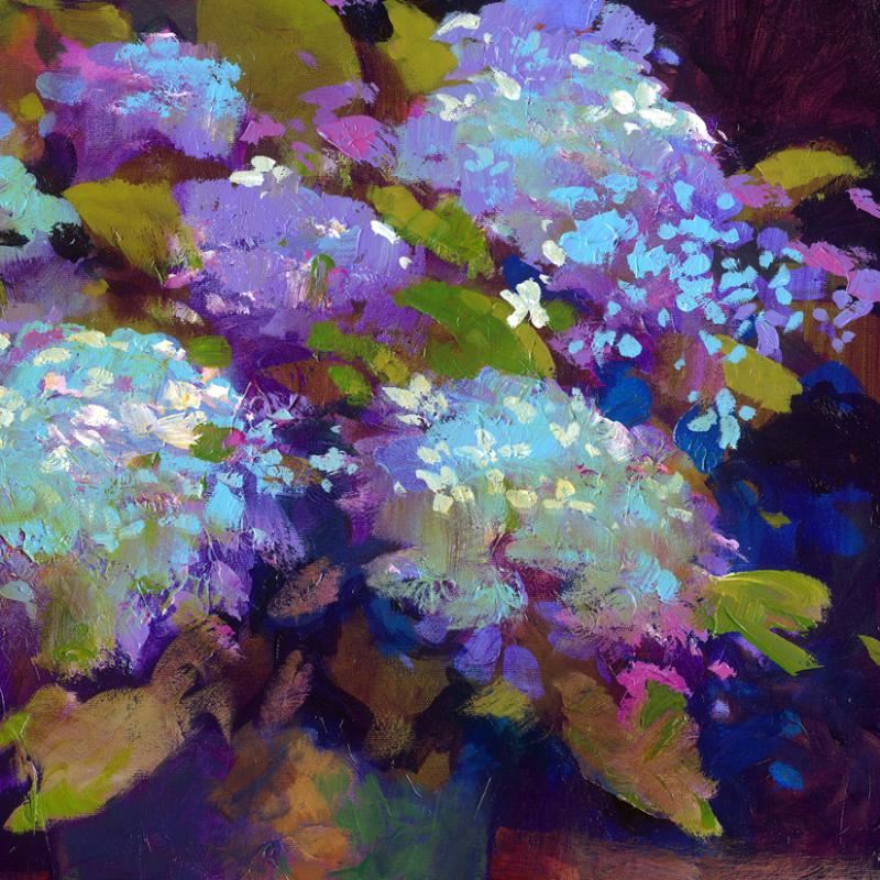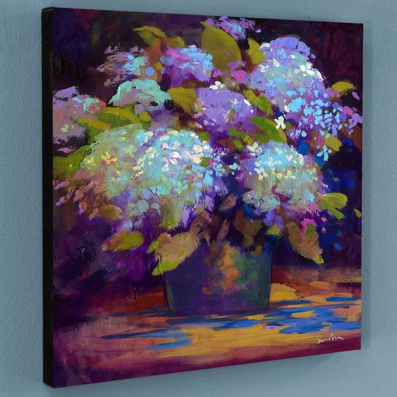 Simon Bull depicts gleaming flowers with bold hues and delicate details, creating graceful and elegant pieces of art. "Hydrangea" is a limited edition giclee on canvas, numbered and bearing Bull's authorized signature. This piece is gallery wrapped and ready to hang. Includes Certificate of Authenticity! Measures approx. 20" x 20" x 1.5" (image).