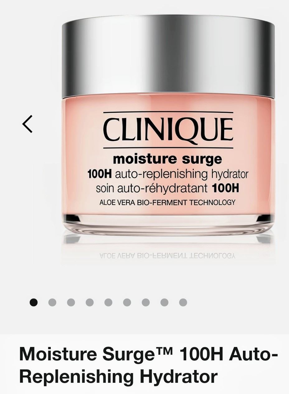 Clinique's 100-hour moisture surge, auto-replenishing technology with aloe vera bio-ferment, new.