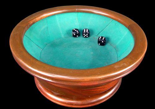 Hyronemous Tub, c.1920 mahogany with 3 black celluloid dice gambling