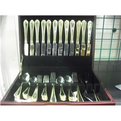 12 Setting Stainless Gold Trimmed Flatware
