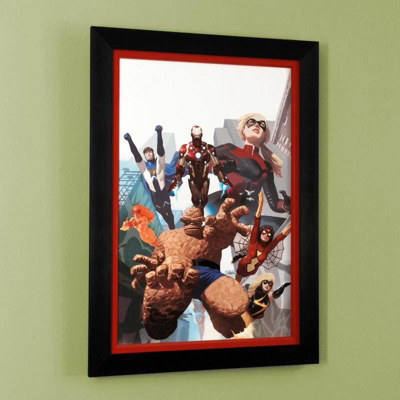 A piece of comic book history, this limited edition, from original art by Daniel Acuna, depicts Thing, Spider Woman, , Ms. Marvel, Iron Man, Stature, Justice, and Firestar. Spanish artist Daniel Acuna cites artists like Jack Kirby and Simon Bisley as his early artist influences. After doing some occasional cover art for Marvel, Acuna signed an exclusive contract with Marvel in 2007. "I Am An Avenger #4" is an extremely limited edition giclee on canvas by Daniel Acuna presented by Marvel Comics, hand signed by the Great Stan Lee (1922-2018) and numbered out of only 4! This piece comes custom framed and ready to hang. Includes Certificate of Authenticity! Measures approx. 29" x 40" (with frame); 22" x 33" (image).