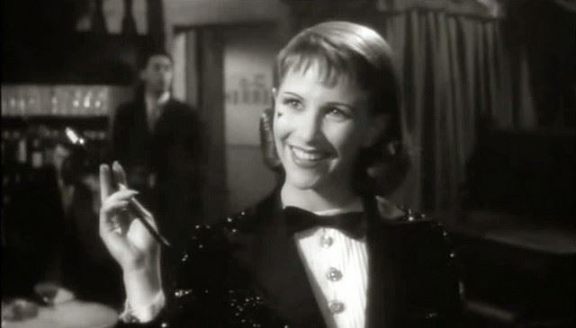 In the precursor to Cabaret (1972) starring Liza Minnelli, Julie Harris played freewheeling cabaret singer Sally Bowles in the film I Am a Camera (1955) and first appears onscreen (at 7-minute mark) wearing this black sequined outfit of high-waisted pants, satin lapel bolero, and sleeveless tuxedo vest with black bow tie and cummerbund. The year 1955 was good to actress Julie Harris with East of Eden's release on March 9th and I Am A Camera's release on July 21st. This costume and accompanying copy of commemorative tribute with photograph come directly from the Julie Harris Estate.
