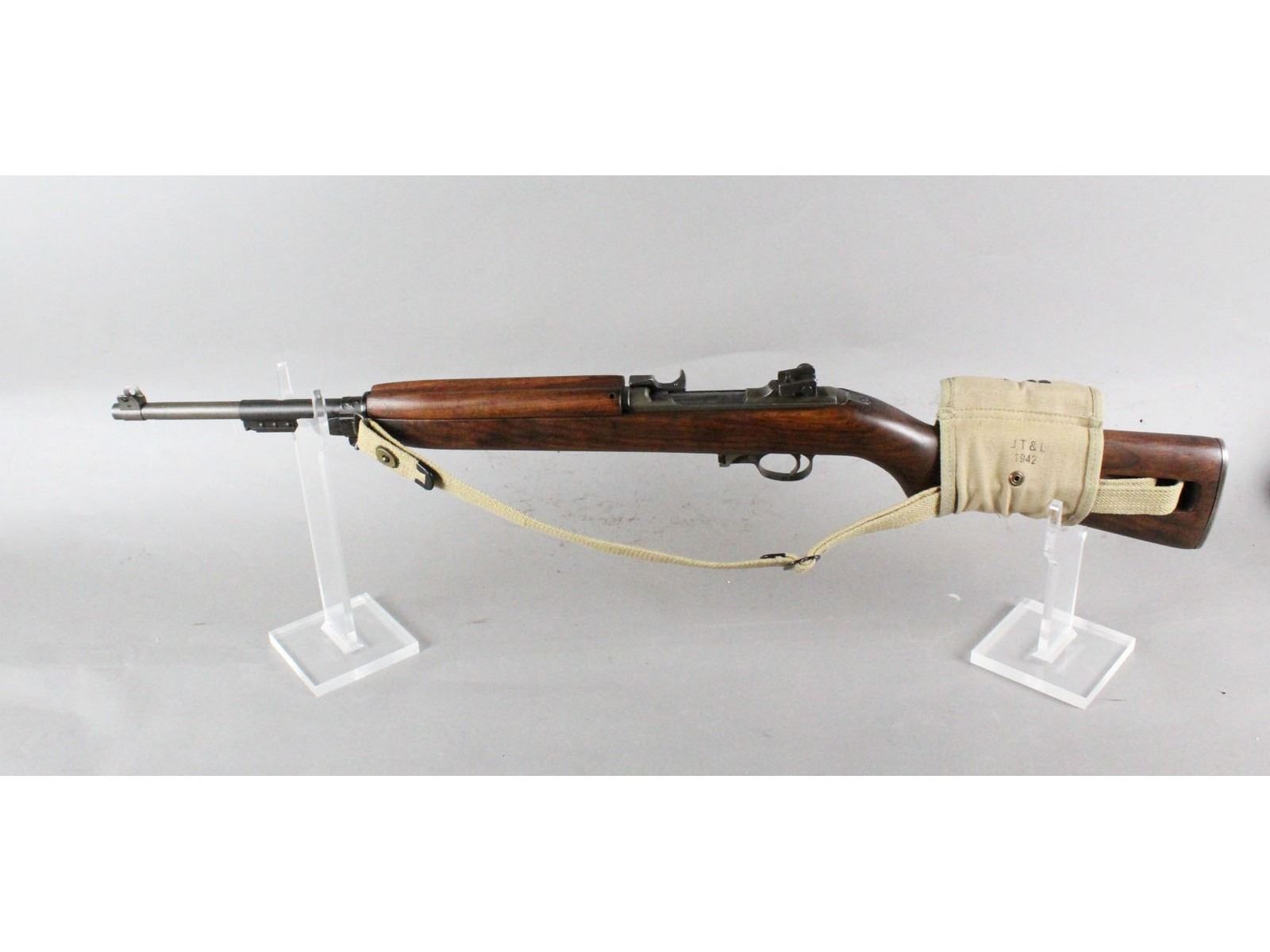 18" barrel. 30 Carbine caliber. Comes with sling, oiler, magazine pouch, six 15 round magazines, three 30 round magazines. Late war type 2 carbine. Rear sight is heavily drifted to 1 side, possibly to compensate for barrel. SN 3862530
