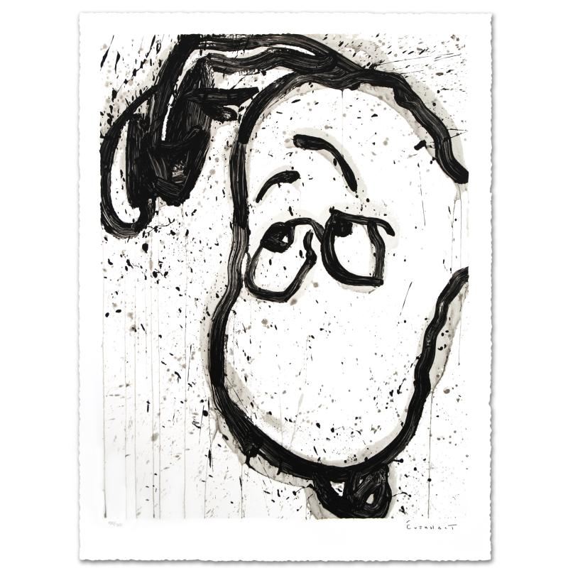 Master Artist Tom Everhart is the protege of famed "Peanuts" creator, Charles M. Schulz (1922-2000). As the only artist in the world granted the rights to draw the "Peanuts" characters in his own work, Everhart creates vibrant, extremely collectible rainbow masterpieces featuring Snoopy, Woodstock and the gang. "I Can't Believe my Ears, Darling" is a limited edition hand pulled original lithograph on museum quality deckle-edge paper, numbered and hand signed by Everhart! Includes certificate of authenticity! Measures approx. 29" x 38" (with border); 25" x 33" (image). This artwork was created on one of two rare antique Marinoni Voirin lithograph presses that date back to the 1800's, and are reputed to come from the Paris print shop used by Henri Toulouse-Lautrec. There are only 7 of these magnificent beasts left in the world: the smaller one (with a print bed size of 25" x 35"), weighs 9 tons, and the larger one weighs in at 11 tons (print bed size 31" x 47"). The significance of this is that the lithographs produced by this method are of the finest quality, using techniques that are so labor and time intensive that very few master printers know how to operate and care for these presses today. Each lithograph is created with hand-mixed colors applied one at a time - a highly trained and synchronized team must hand feed each museum-quality sheet of paper through the press numerous times in order to set the colors and impressions, while the Chromist - a trained color specialist - adjusts each color by look and feel to match the original artwork, as if mixing a potion. The result is an image with maximum pigment saturation, formed through rich layers of color that imbue the artwork with a permanency of brilliance - proven over centuries to last. In contrast, today's printers use a method more akin to a dot matrix style application, with the colors all premixed and sprayed onto a sheet in a uniform layer, resulting in a much less saturated image that is susceptible to fading and imperfect color reproduction. This is one of the final Tom Everhart editions to be printed using this very special technique.