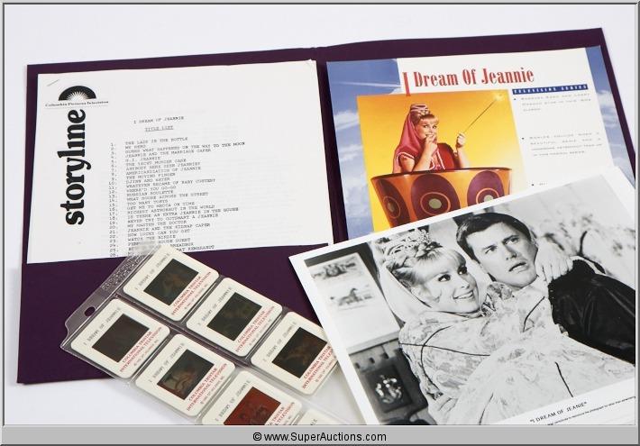 "I Dream Of Jeanie" Columbia Tristar International Television Media Folder ~ Barbara Eden and Larry Hatgman star in this 1960's Classic ~ Includes Storylines / Color Slides / Black & White Photos / Promo Insert / 3 Folders