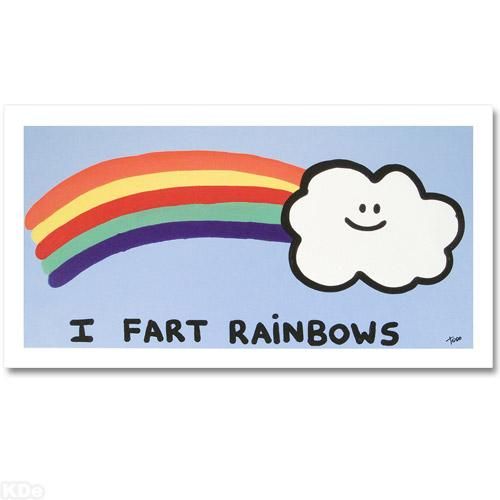 ADD THE IRREVERENT ARTWORK OF WORLD-RENOWNED ARTIST TODD GOLDMAN TO YOUR COLLECTION! Pop artist Todd Goldman is known all across the globe for his whip-smart and wickedly funny puns and pictures! "I Fart Rainbows" is a limited edition giclee on canvas, numbered in verso out of only 40 and hand signed by Todd. Includes Certificate of Authenticity! Measures approx. 36" x 18" (image).